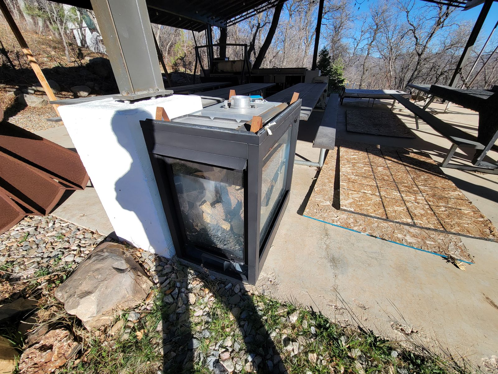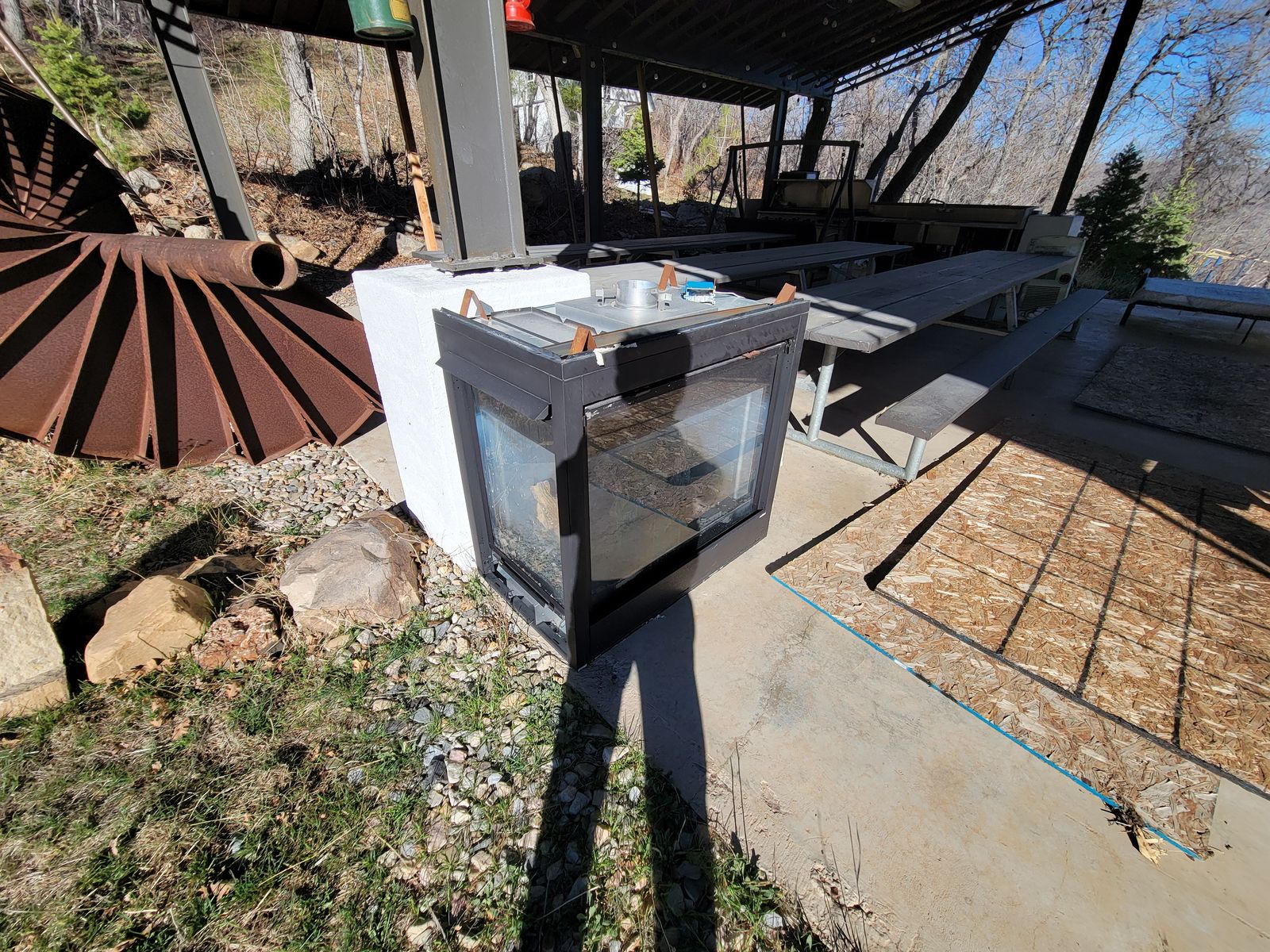 NOTE, THE PAVILION, THE BATHROOM, THE MOTORHOME ARE ALL FREE TO TAKE AT NO COST. THERE IS MORE FOR FREE OR NEXT TO FREE: CONSTRUCTION LEFTOVERS, LIKE A ROCK SIFTER, ROOFING, CINDERBLOCK, METAL...ETC. RESTAURANT SANDWICH MAKING REFRIGERATOR (STAINLESS RESTAURANT GRADE)