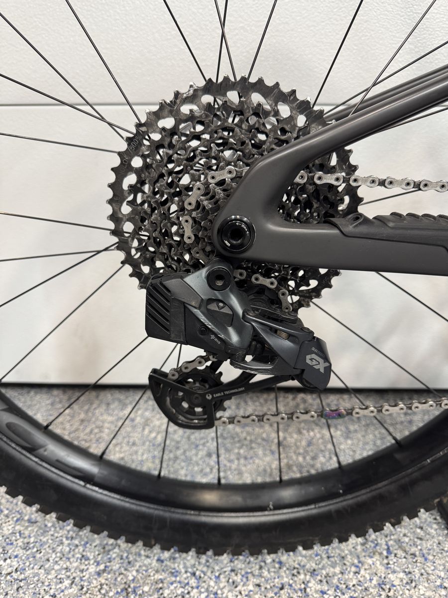 Full GX AXS drivetrain + X0 chain. 175mm cranks w/ 34t chainring. 10-51t cassette.
