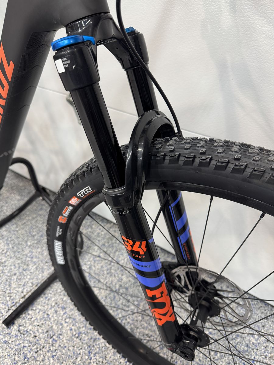 120mm Fox 34 SC w/ Grip damper fork. Fox Float DPS Rear shock (115mm).