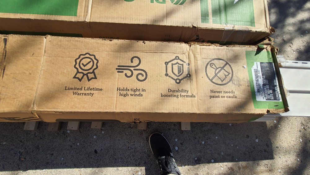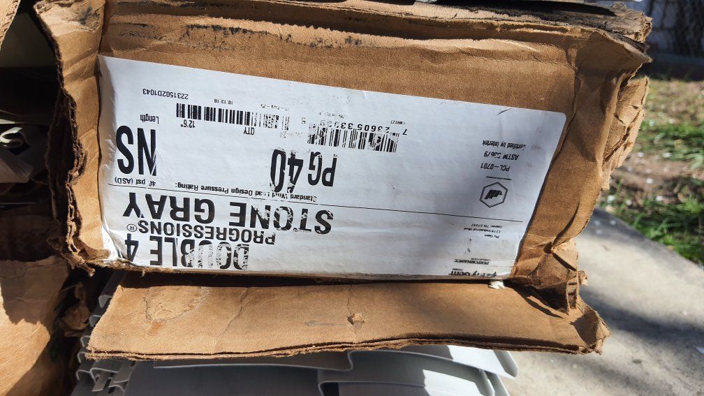 PayPalPlygem Transformations Double 4 in. x 150 in.. Each box covers 200 sf. Two boxes of each of the following colors, Stone Grey, Khaki, and Ivory.