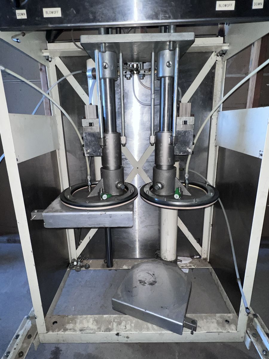 Acquired from a storage auction in Ogden, Utah. Unit appears mostly complete but is untested. Stainless tanks, pumps, gauges, and mixing system present. One pneumatic arm lowers when not pressurized.