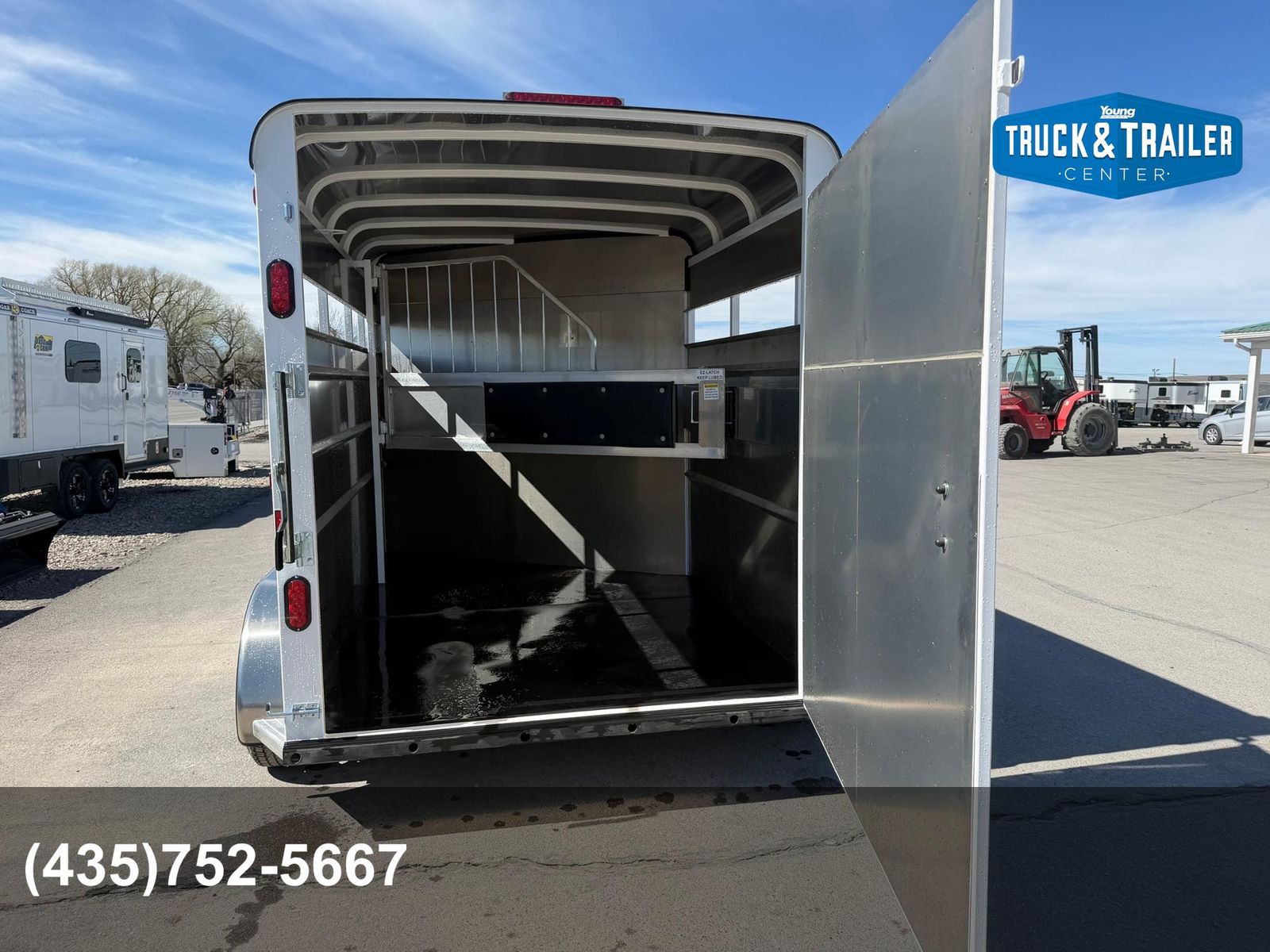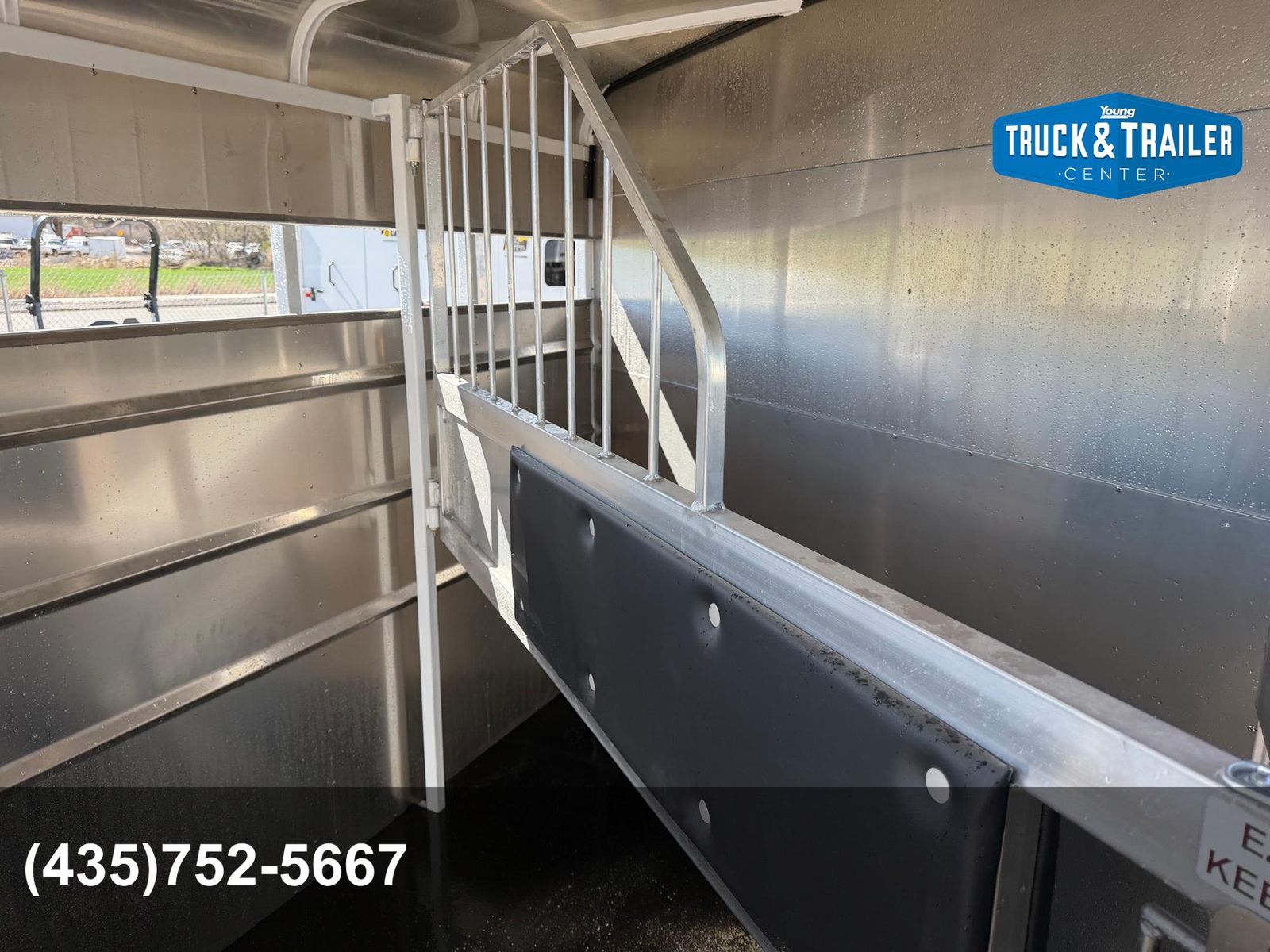 2 Horse Slant Load Front Sealed Tack Swing Out Saddle Racks Door Organizer Bridle Hooks Horse Area Has Floor Mats Aluminum Jail Bar Divider w/ Pad Spare Tire