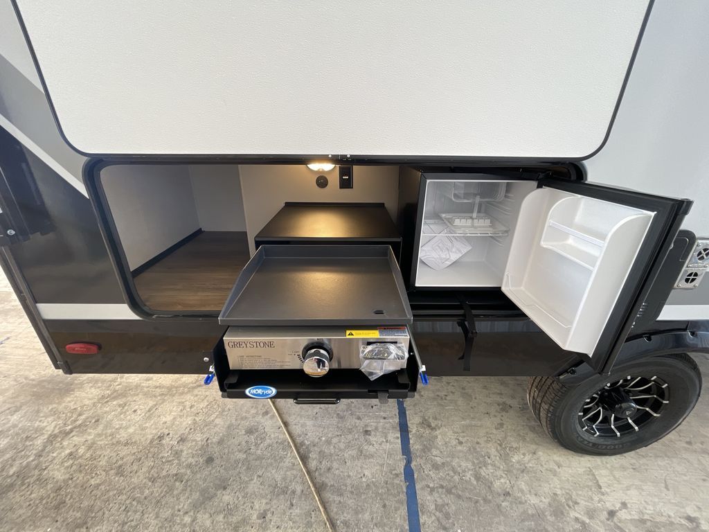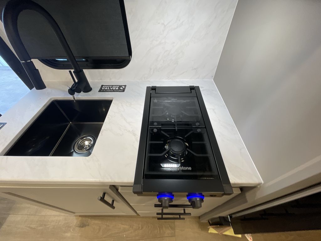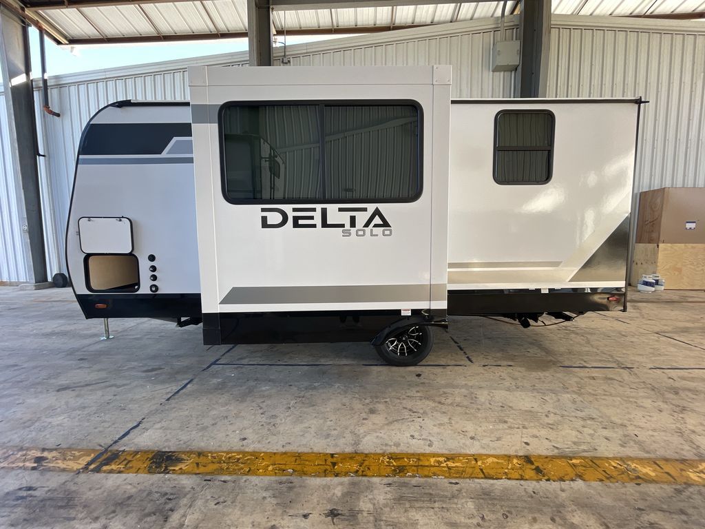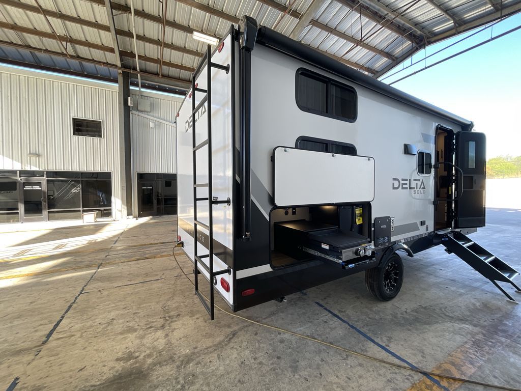 Each Delta Solo Model Each is designed to provide both comfort and convenience in a compact footprint. Inside, you'll find residential-style touches like can-style LED ceiling lights, cabinet doors with magnetic catches, and commercial-grade vinyl flooring built to last. On the exterior, practical travel features include exterior switches for the slide-out and awning, sturdy Step Above fold-out entry steps, and color-coded, numbered wiring for simplified maintenance and troubleshooting.