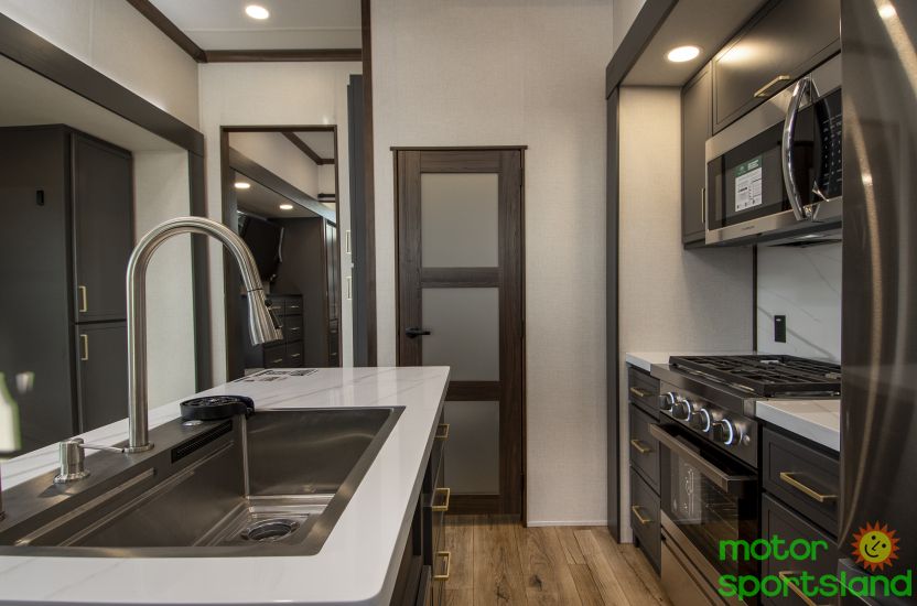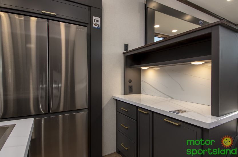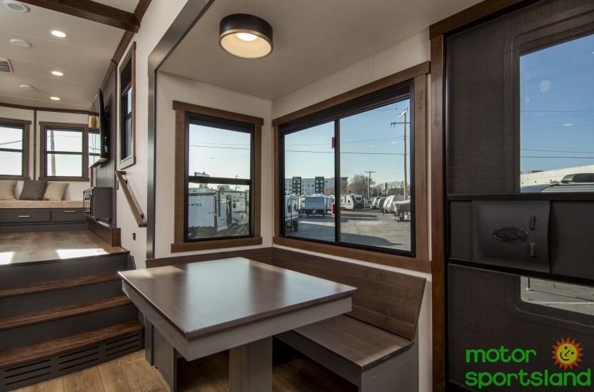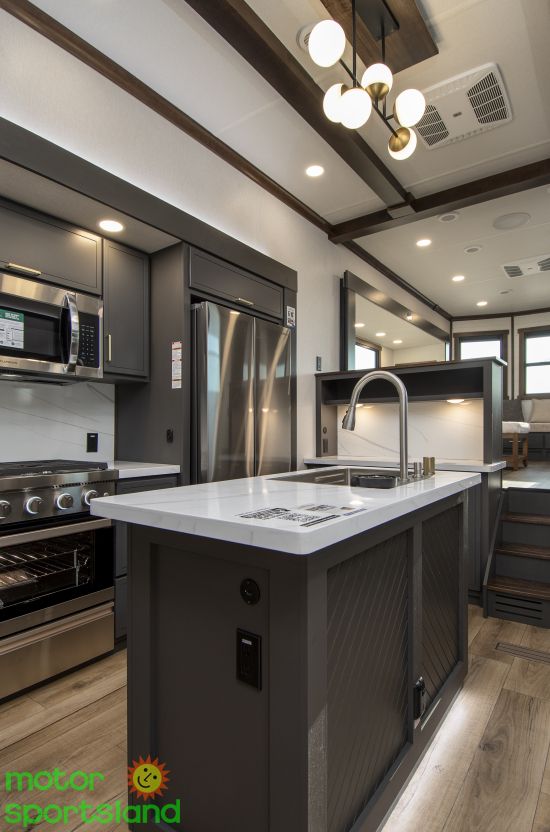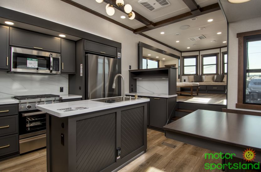 Unmatched Comfort: Spacious interiors with plush furnishings and residential-style amenities ensure everyone feels at home. Luxury Redefined: High-end finishes, gourmet kitchen with premium appliances, and designer touches elevate every moment on the road. Family-Friendly Design: Multiple sleeping areas, including a cozy master suite and bunk options, provide space for the whole crew. Advanced Technology: Smart RV features and climate control systems keep you connected and comfortable in any season. Durability & Style: Built to last with Forest River’s legendary craftsmanship, this Fifth Wheel boasts a sleek, modern exterior.