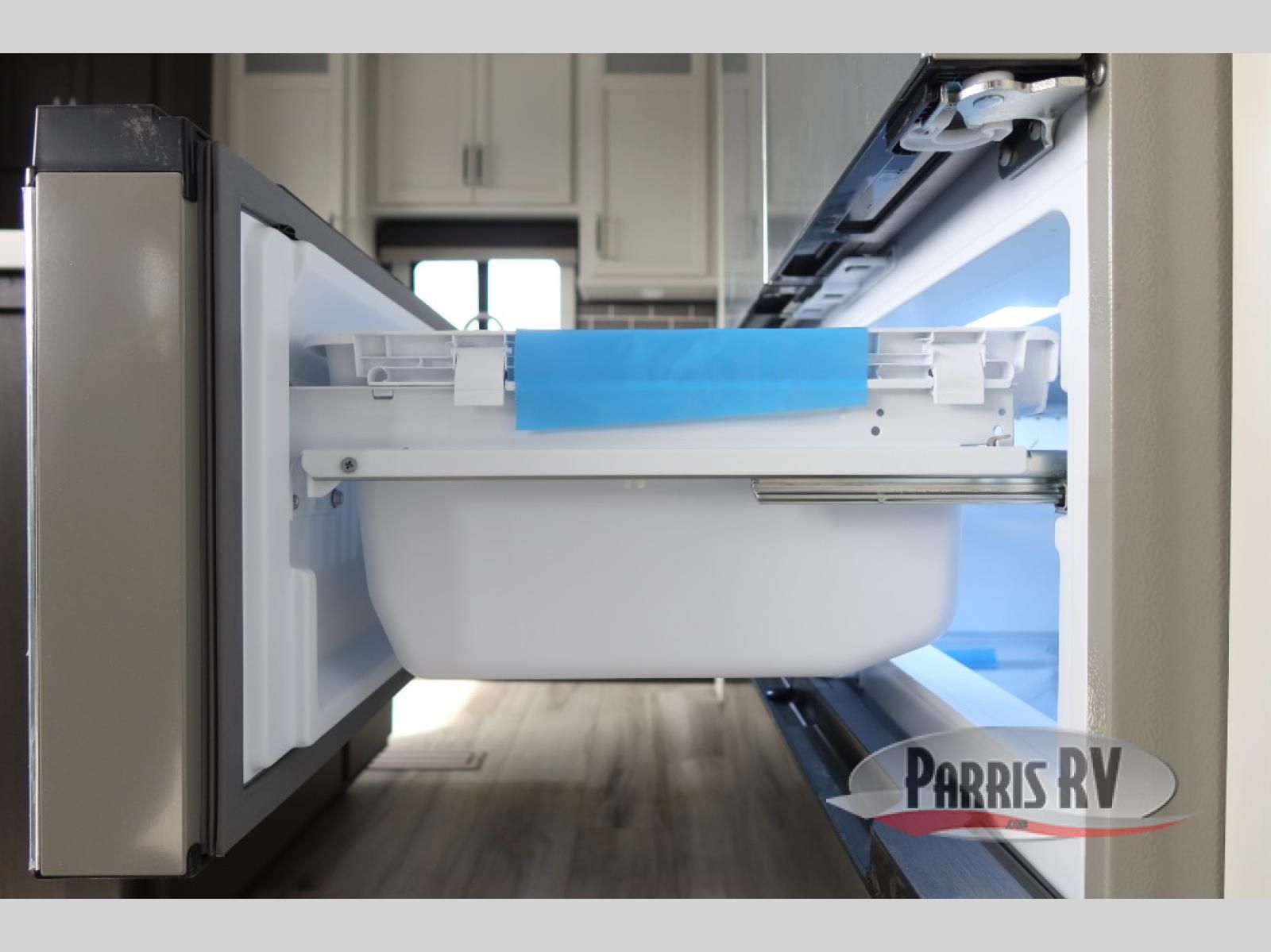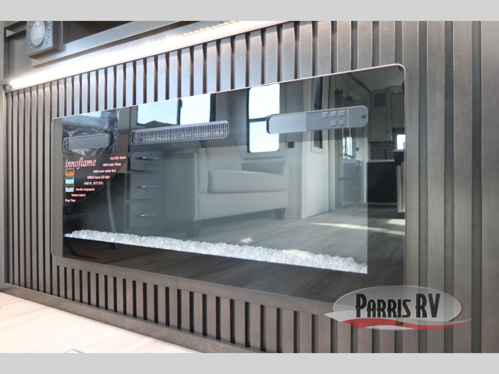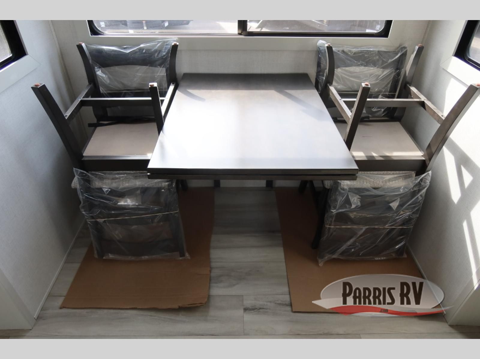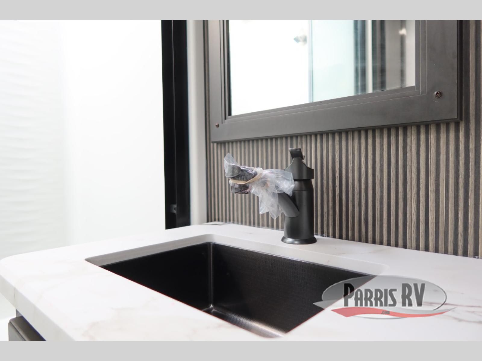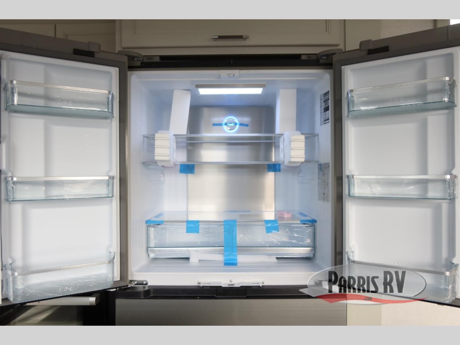 This rear kitchen fifth wheel makes extended stays or weekend trips to the lake enjoyable! The chef of your group will find plenty of counter space with the included kitchen island, plus there is a pantry and 18 cu. ft. residential refrigerator for food storage. A free-standing dinette provides a place to dine together, and the largest L-shaped sofa with recliners will be the perfect spot to relax with a movie. If you have guests, they could sleep here or on the hide-a-bed sofa sleeper. The dual entry bath includes a shower with a seat for added comfort, and the front master bedroom will feel just like home with its king bed slide out and master closet. There is also a dresser and stackable washer and dryer prep if you want to add those appliances!