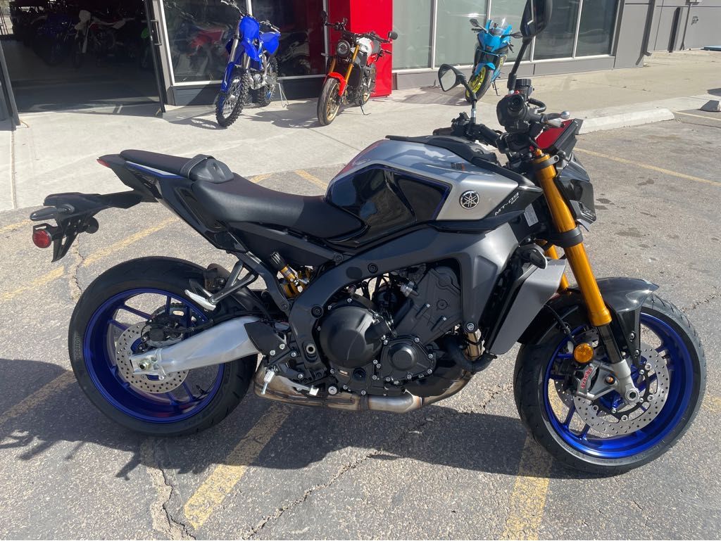 WHEEL BASE Engine Type: Horizontal In-line Displacement: 54.3 cu. in. (890 cc) Bore and Stroke: Bore: 3.07 in. (78 mm); Stroke: 2.44 in. (62.1 mm) Cooling: Liquid Compression Ratio: 11.5:1 Fuel System: Gas Transmission: Manual Front Suspension: Inverted Fork Rear Suspension: Twin Sided Swing Arm Front Brakes: Dual Hydraulic Disc Rear Brakes: Hydraulic Disc Front Tire: 120/70 ZR17 Bridgestone Battlax Hypersport S23 Rear Tire: 180/55 ZR17 Bridgestone Battlax Hypersport S23 Wheelbase: 56.3 in. (1430 mm) Seat Height: 32.5 in. (825.5 mm) Rake: 24.7 Trail: 4.3 in. (109.2 mm) Fuel Capacity: 3.7 gal. (14 L) Speedometer: Standard Tachometer: Standard Odometer: Standard