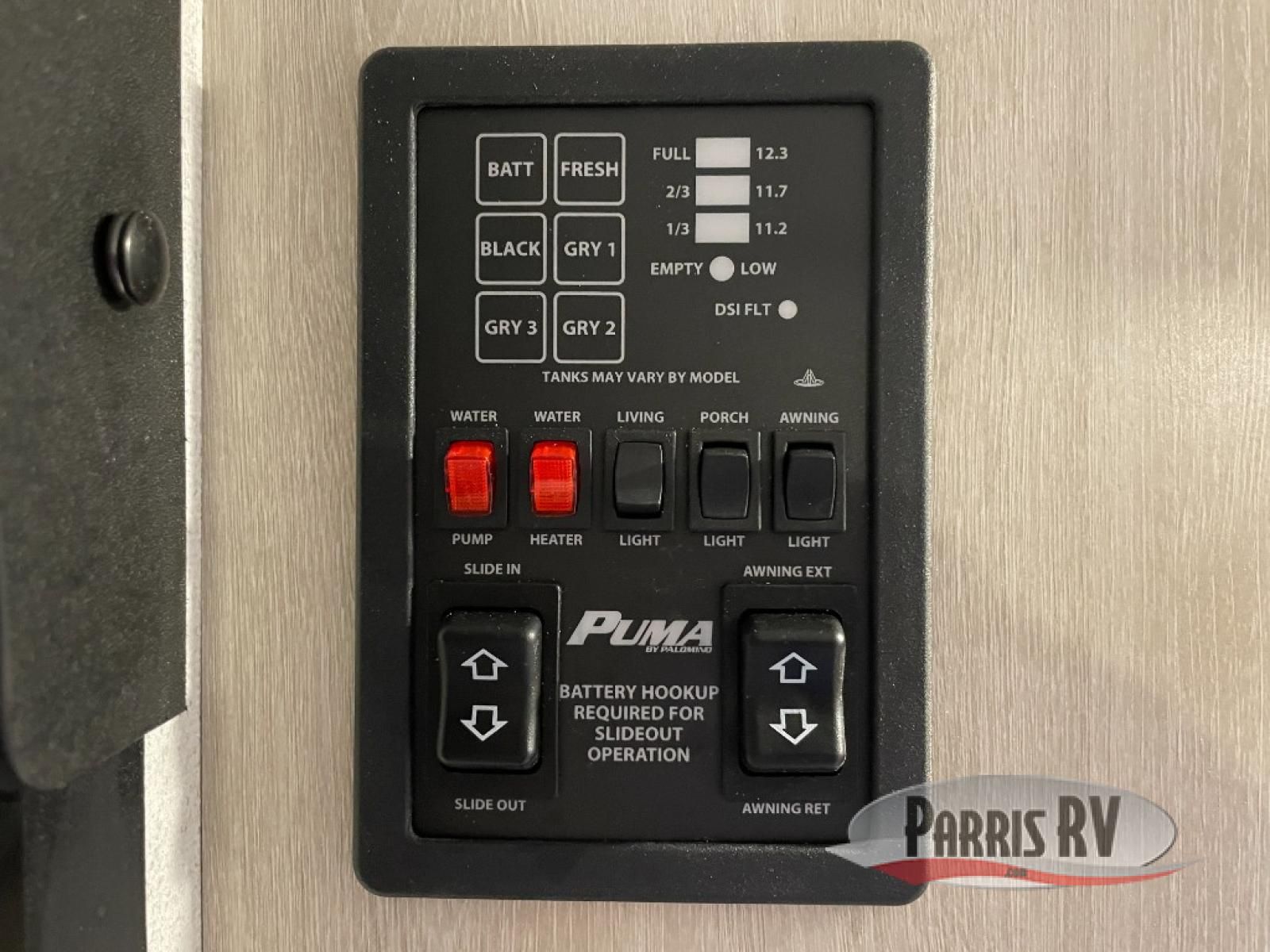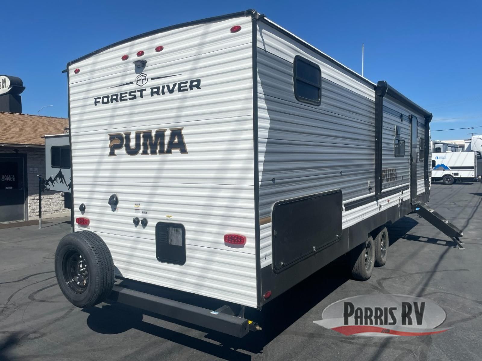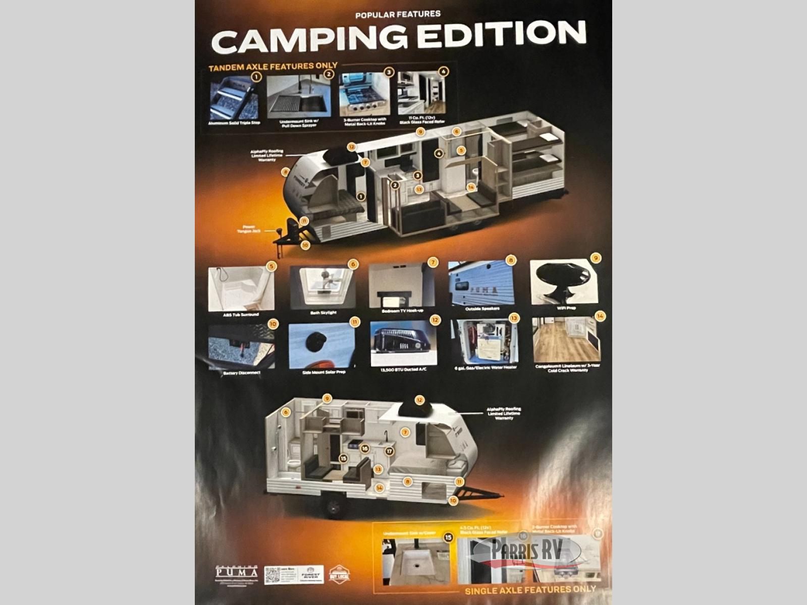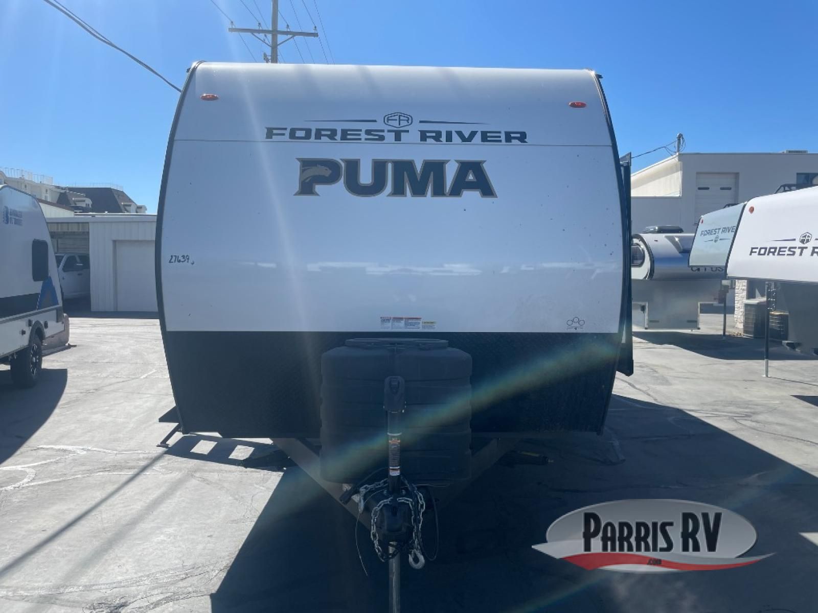 The Puma Camping Edition by Forest River offer an affordable travel trailer for rookie campers or seasoned RVers! They are built with 5/8" tongue and groove plywood flooring and a front diamond plate for added protection. There are also exterior magnetic baggage door latches, back up camera prep, a battery disconnect. Head inside to find Thermofoil countertops with a smooth drop edge, bedroom USB ports and outlets, and pleated shades in the living room.