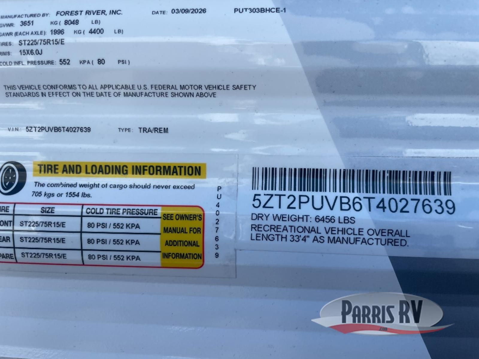 Forest River Puma Camping Edition travel trailer 303BHCE highlights: