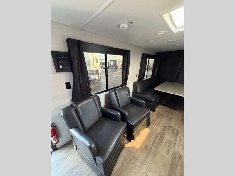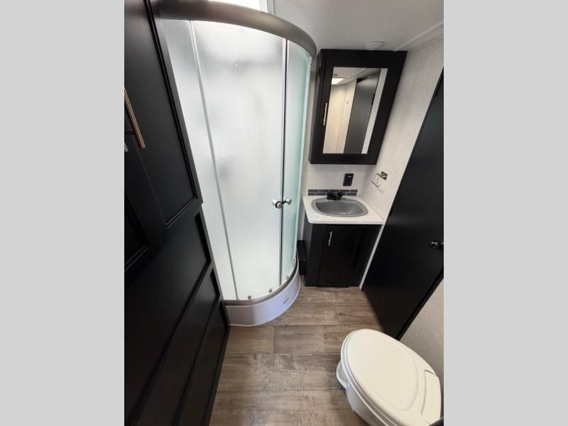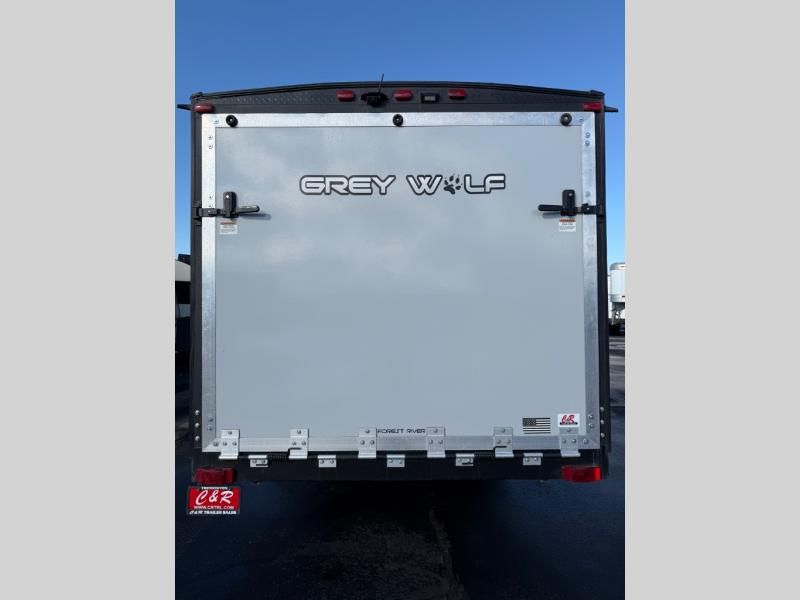 Whether it's a journey that will take you to new locations or a tried-and-true getaway to that favorite and memorable destination, the Forest River Cherokee Grey Wolf travel trailers and toy haulers are going to make the trip worth it every single time! You can travel in confidence with the premium wheel package, seamless roofing membrane with heat reflectivity, Power Gear frame technology with space-saver rail design, and Cherokee back-up camera system. The Cherokee Grey Wolf's interior is highly attractive with its stainless steel kitchen suite package, premium bedding ensemble and comforter, and 8" ceiling-mounted subwoofer with accent lighting. You will also find a black waste tank flush-out kit, an outside shower with hot and cold water, an armored underbelly tank enclosure, a power tongue jack, and an RV grill quick connect.