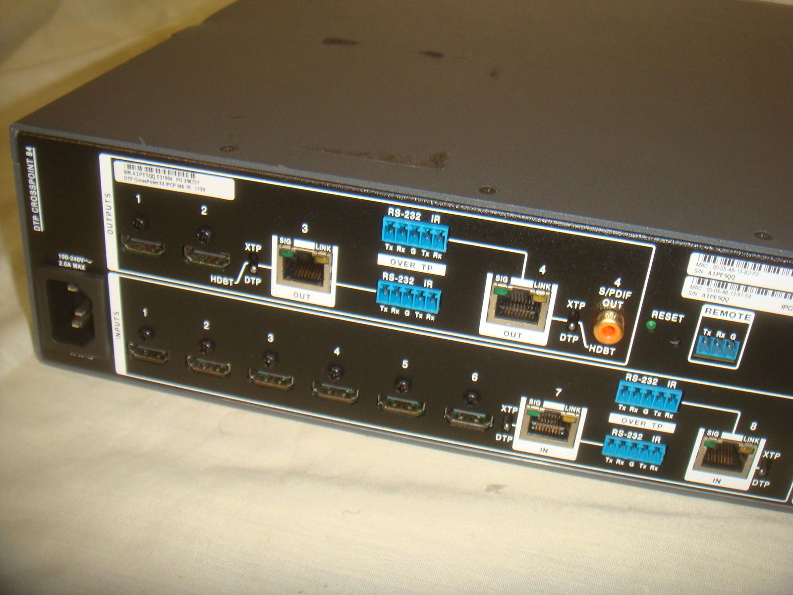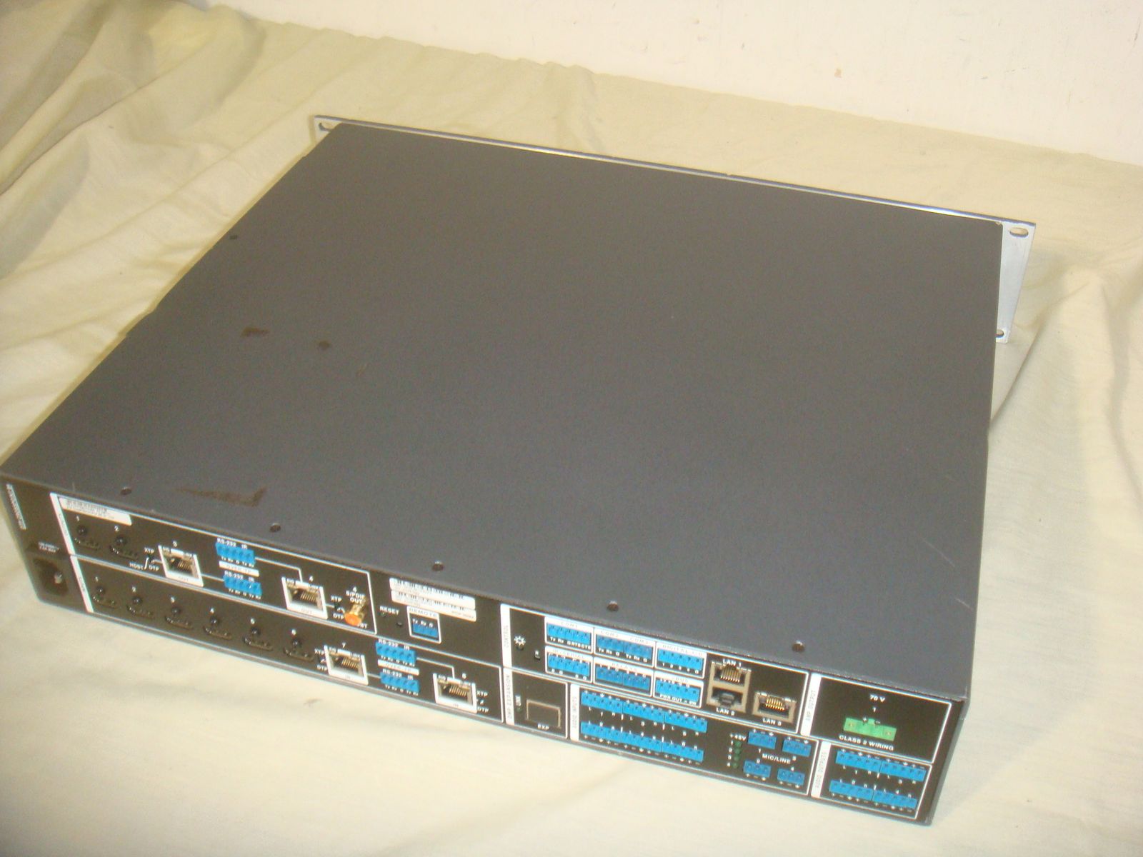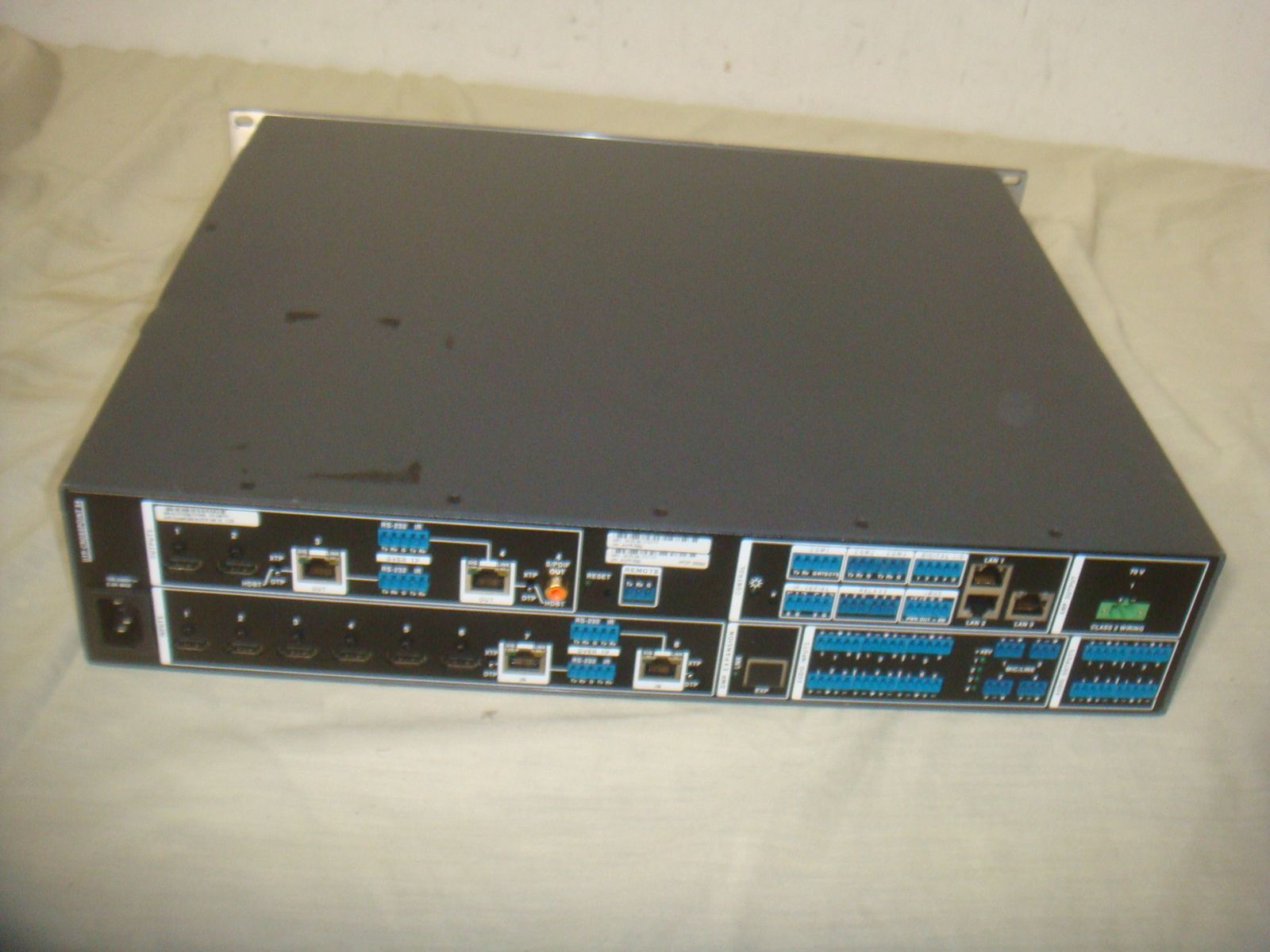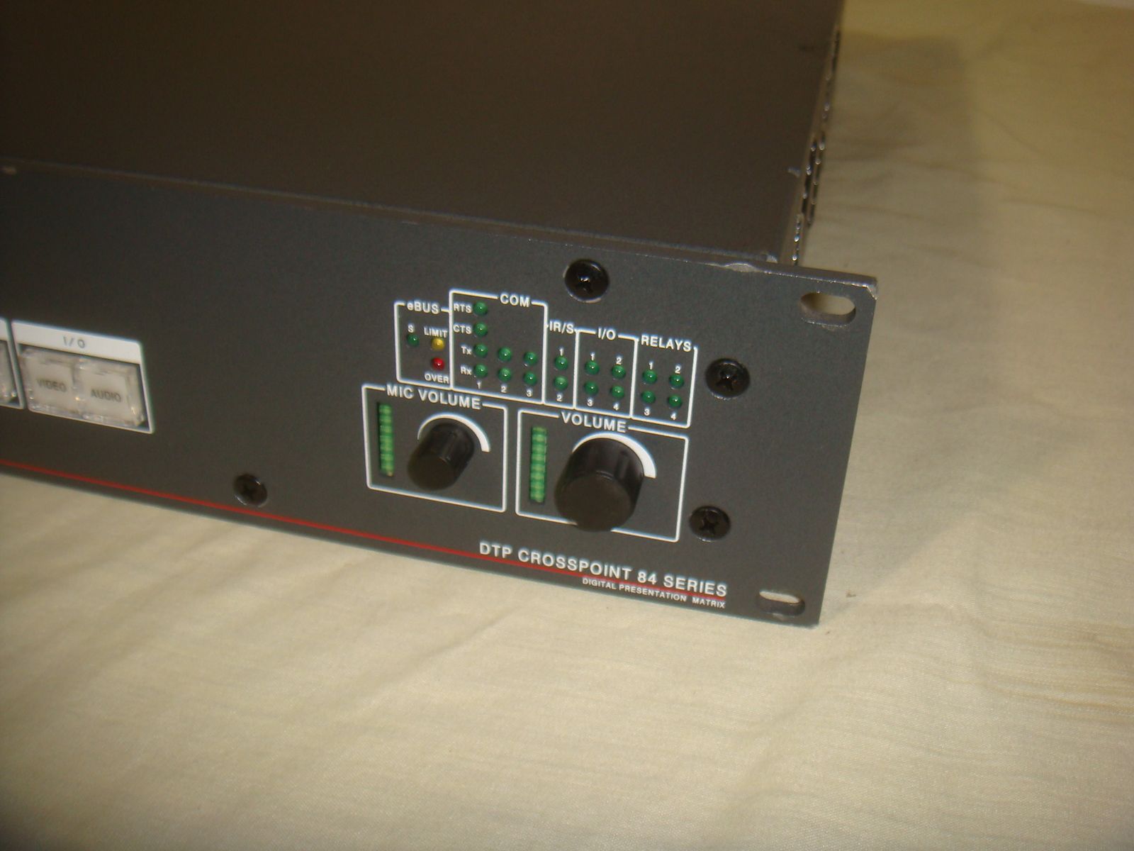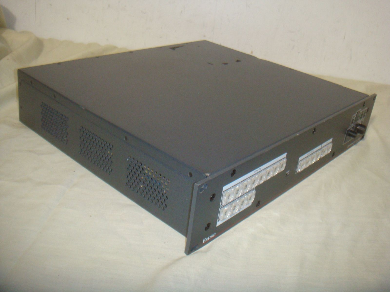 EXTRON DTP CROSSPOINT 84 DIGITAL PRESENTATION MATRIX. This is a used unit that has a few surface marks and minor corner dings on the rack ears, but that's in overall great condition! It is the unit only without any accessories. It comes with everything shown. This is your chance to save big-time so don't miss out!!
