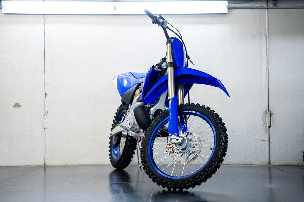 2026 Yamaha YZ250 Team Yamaha Blue ULTIMATE PERFORMANCE TWO-STROKE The YZ250 offers pure performance and full-throttle adrenaline in a lightweight and reliable two-stroke machine. Features may include: ENGINE Patented Yamaha Power Valve System (YPVS) combines crisp bottom-end acceleration with strong mid-range and top-end. Advanced 38mm Hitachi Astemo® Keihin PWK38S carburetor provides precise fuel/air mixing and crisp throttle response. Special-design carbon fiber reed-valve petals improve the throttle response and engine performance across the entire rpm range. Digital CDI system delivers precise spark for faster, stronger response anywhere in the rev range. Smooth-shifting, close-ratio five-speed transmission with a heavy-duty, multiplate clutch ensures confident gear changes. High-capacity radiator with dark louvers deliver maximum cooling efficiency and an aggressive look. CHASSIS/SUSPENSION Removable aluminum rear subframe is constructed of square-section tubing for reduced weight. Premium Dunlop® Geomax MX33 tires offer race-developed performance on a wide range of terrain. Lightweight 21-inch front and 19-inch rear Excel® rims provide exceptional durability and a premium look. High performance brakes feature a 270mm front and 240mm rear rotor for superb braking power and feel. Fully adjustable KYB® shock offers exceptional rear wheel control and ride performance along with 12.4 inches of travel. Fully adjustable Speed Sensitive KYB® 48mm forks offer precise handling, superb bump absorption and 11.8 inches of travel. ADDITIONAL FEATURES Carefully considered ergonomic design includes a flat seat and slim, integrated body panels for greater freedom of movement. Competition-ready features include two-position adjustable handlebar, wide foot pegs, and works-style clutch cable adjuster. Premium Yamaha graphics are embedded to provide excellent durability and scratch resistance.