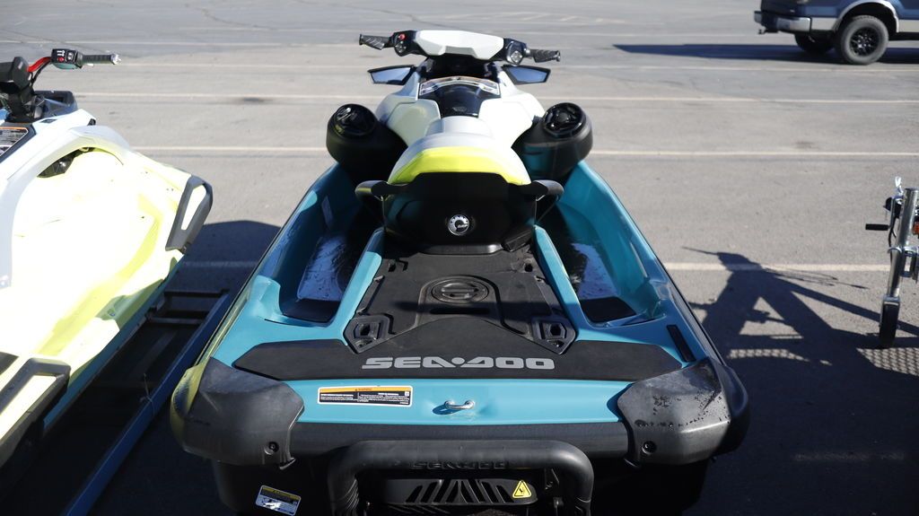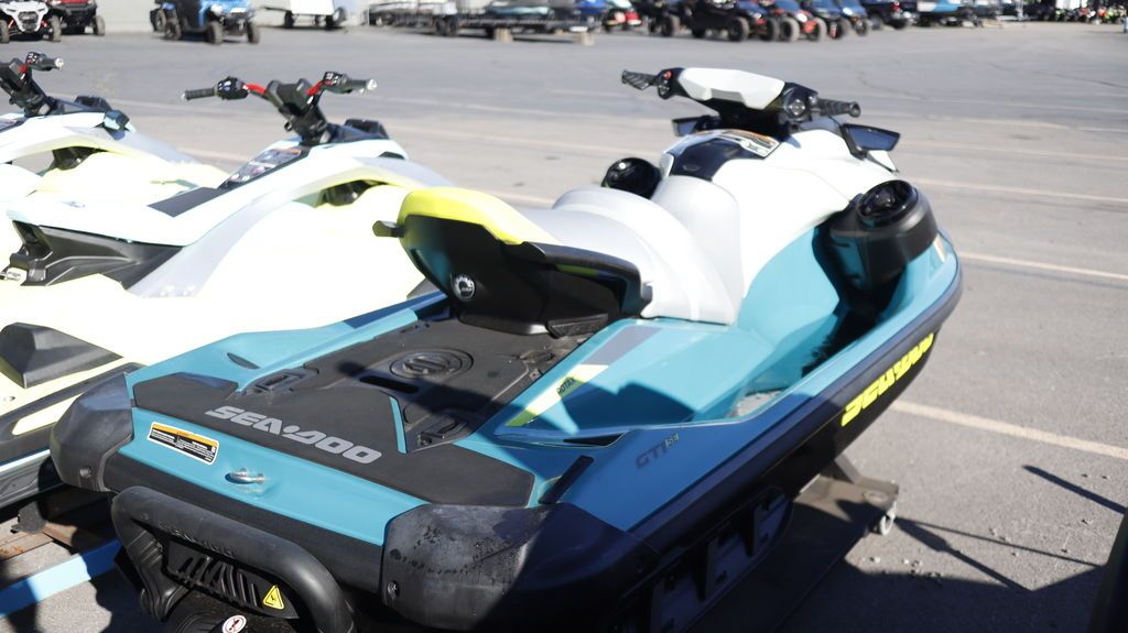 2024 Sea-Doo GTI™ SE 130 iBR Tech, Audio, iDF, iBR Fun Made Easy Where adventure meets comfort and convenience Sea-Doo GTI SE The GTI SE is where family fun goes bigger and better with more comfort and convenience. Standard features include boarding ladder, touring seat, variable trim and an optional 100 watts of Bluetooth premium audio. Features may include: Hull Playful yet predictable Polytec Gen II material The GTI hull design delivers loads of fun and is easy to drive with a confident, predictable ride. Robust Polytec material reduces the weight of the watercraft to deliver outsized performance and efficiency. Plus, it’s more scratch-resistant than fiberglass. iBR Intelligent Brake and Reverse Stop sooner and dock with ease Exclusive to Sea-Doo, the iBR system lets you stop sooner for greater peace of mind and offers more control and maneuverability in tight areas like marinas and boat ramps. Recognized by the U.S. Coast Guard for improving boat safety. VTS Variable Trim System (VTS™) Precision tuning Quickly access the Variable Trim System (VTS) on the handlebar for fine-tuned handling based on rider preference, water conditions, and number of passengers. Storage Large front storage with watertight phone compartment An impressive 38 gallons of sealed storage space allows riders to safely stow plenty of those must-have items for a full day of fun. Snorkel gear, towels and tow ropes have a home all their own while your phone is protected from the elements. Swim Platform Extra Space and Versatility Swim Platform with LinQ system Large swim platform offers enhanced stability and more comfort. It’s the perfect place to lounge or prep for watersports and makes reboarding a breeze. Included LinQ attachment points add even more versatility.