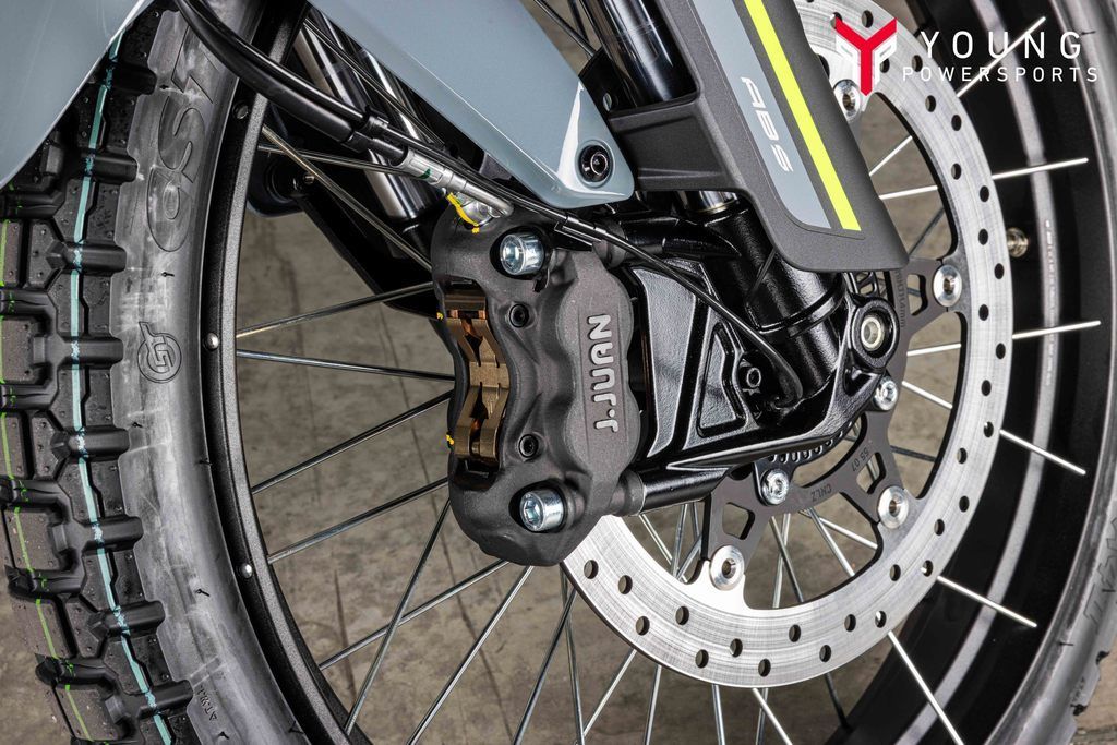 J.Juan Brakes – 320mm Front / 240mm Rear with Switchable ABS- Serious stopping power with one-touch ABS on/off switch. J.Juan brakes offer high-end feel and performance, while the ability to switch off ABS at the rear lets you lock up when you need to—like in deep sand or dirt.