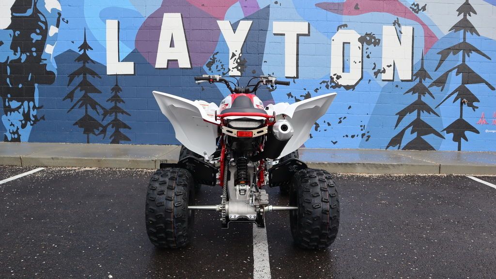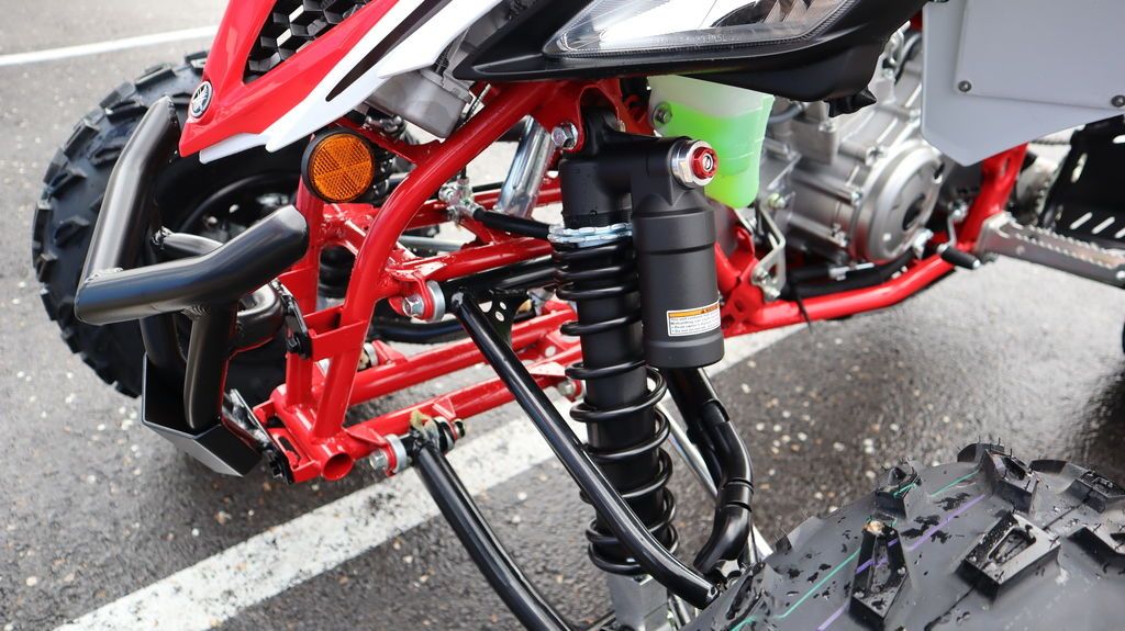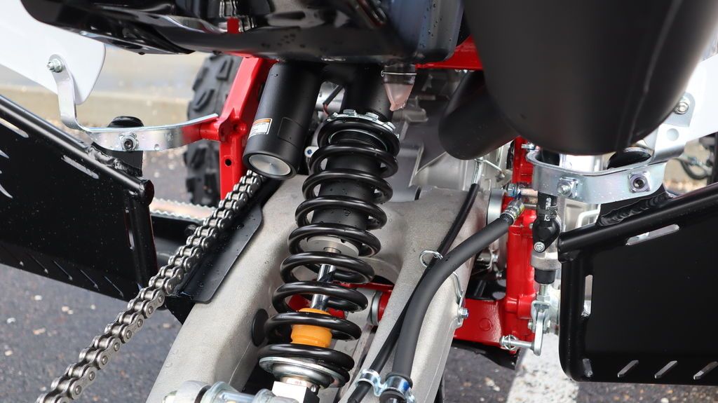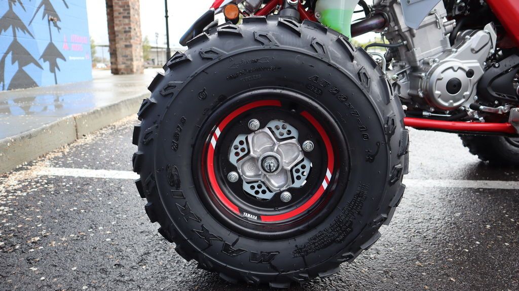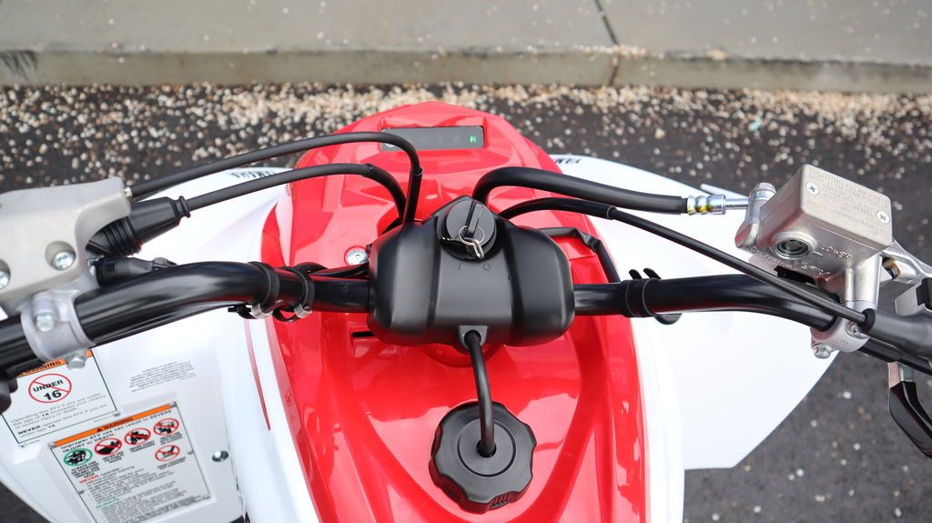 Fully adjustable YZ-style piggyback shocks offer preload, rebound, and compression adjustment, with 9.1 inches of front travel and 10.1 inches of rear travel. Dual front disc brakes and a rear brake provide strong stopping power, while lightweight aluminum wheels help reduce unsprung weight.