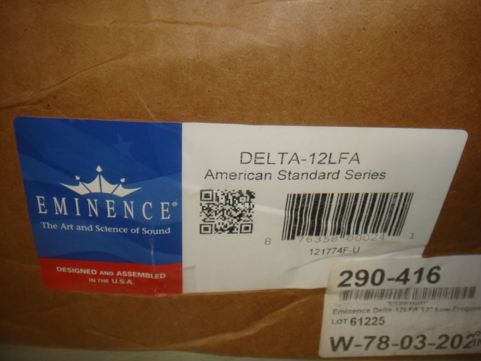 BRAND NEW EMINENCE DELTA12LFA 12" 8 OHM 1000 WATT MID-BASS LOUDSPEAKER DRIVER. This is new, never used or installed. The original box might be slightly distressed, but the speaker is in new, perfect condition. It comes with everything shown. This is your chance to save big-time so don't miss out!!