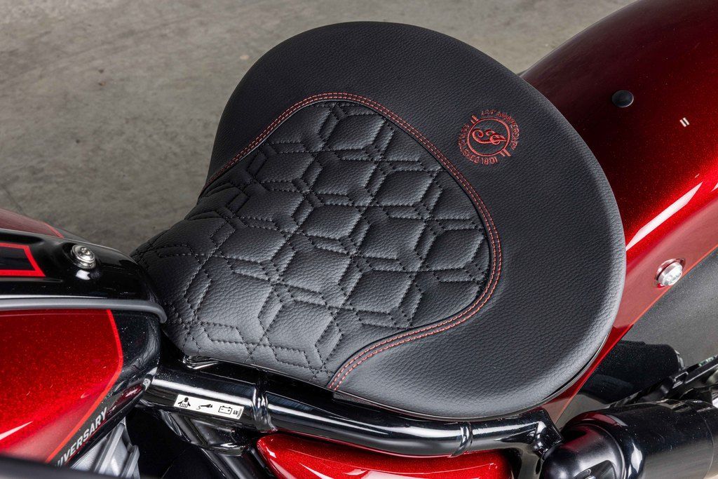 The floating solo seat on the Chief Vintage 125th Anniversary Edition seat looks like it could’ve rolled out of a factory seventy years ago, but the ergonomics are thoroughly modern. The seat is crafted with premium leather and an embossed 125th Anniversary logo with color-matched stitching. Each unit is individually numbered and with only 250 units available globally, this Anniversary Edition exudes exclusivity.