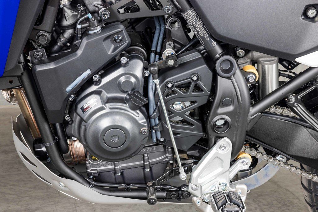 Advanced Crossplane Twin-Cylinder Engine- The Ténéré 700 's renowned CP2 engine combines exceptional reliability and exciting power delivery in a compact, fuel-efficient package. With an overall size similar to some single-cylinder motors, the 689cc fuel-injected, liquid-cooled, DOHC inline twin gives the Ténéré 700 a slim feel for exceptional off-road confidence, while the counterbalanced two-cylinder design provides smooth, broad power ideal for long days in the saddle.