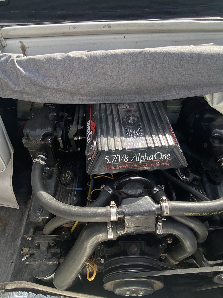 2-owner, clean boat that’s been well taken care of. Powered by a 5.7L MerCruiser Chevy V8 with Alpha One outdrive — engine was replaced 10 years ago and runs strong. No smoke, no issues, just a solid reliable setup.