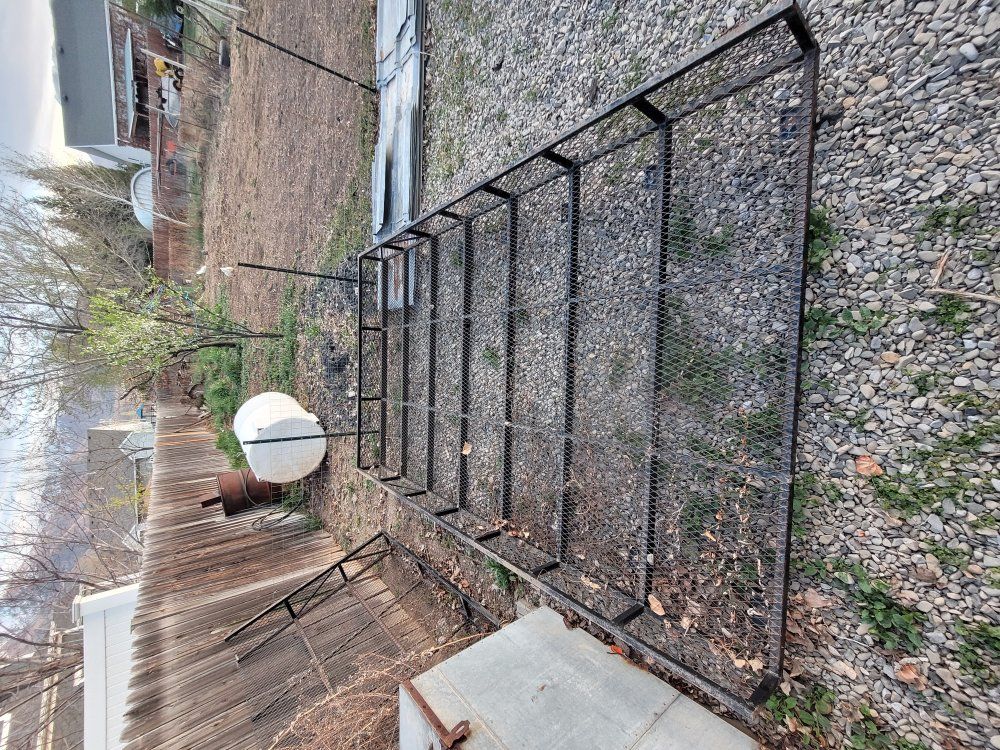 All metal cargo rack measures 9'-10" x 6' x 9". There are rack attachments every 17". This would also make a great trailer bed if you're building a trailer.