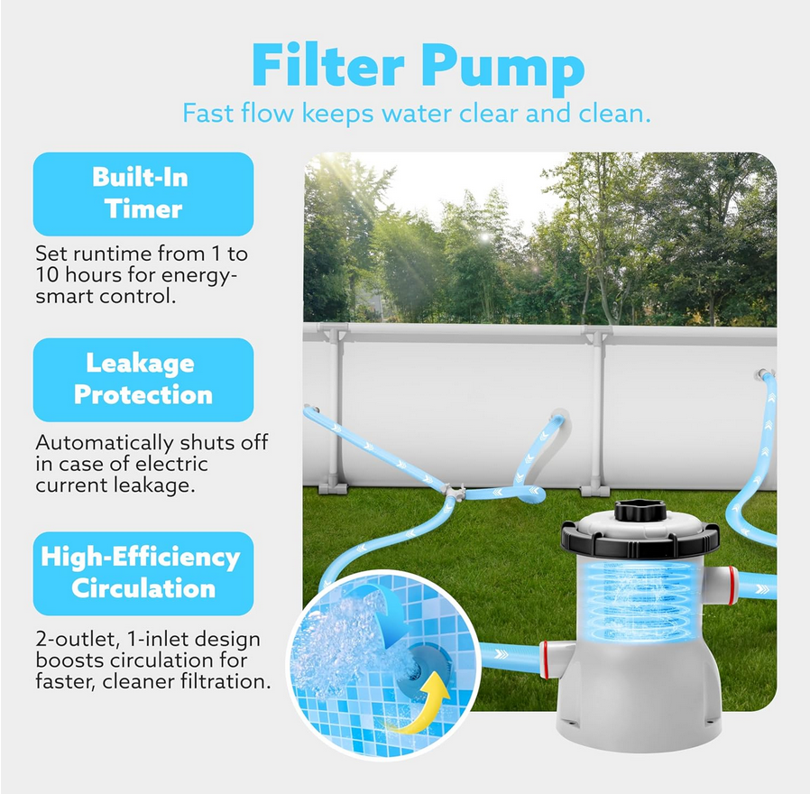 New, Sloosh above grounds swimming pool with filtration system