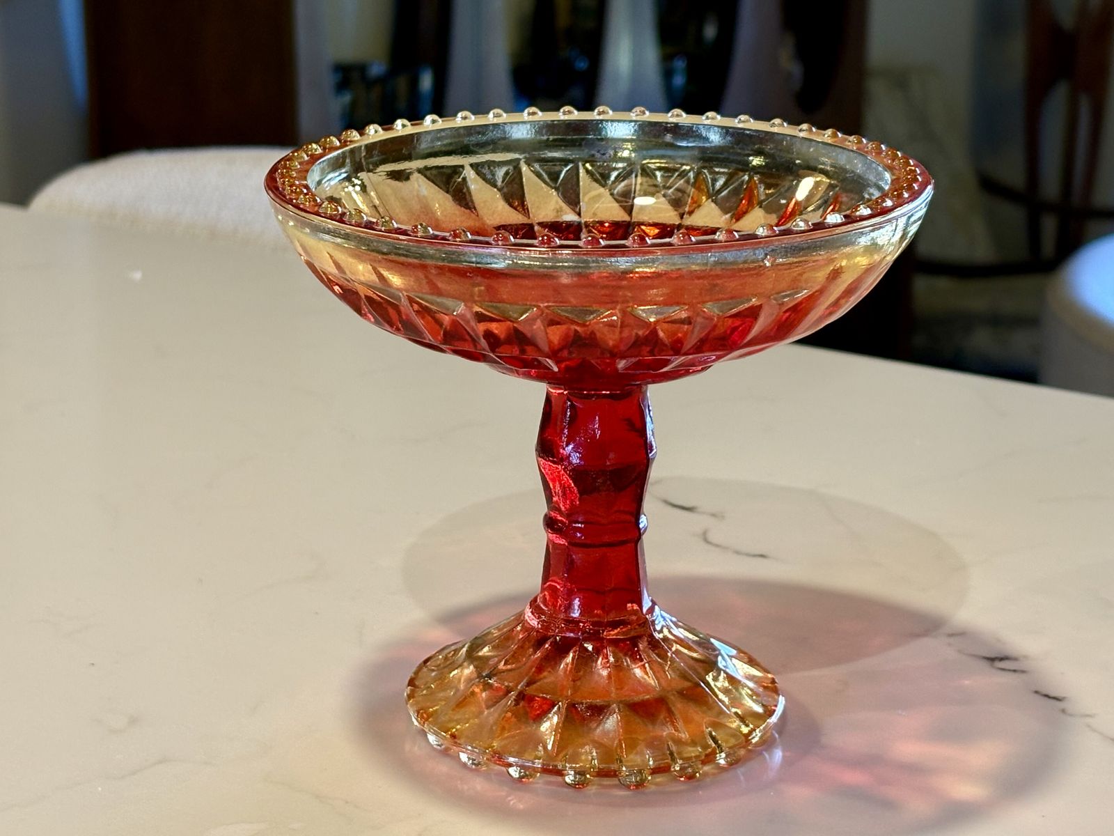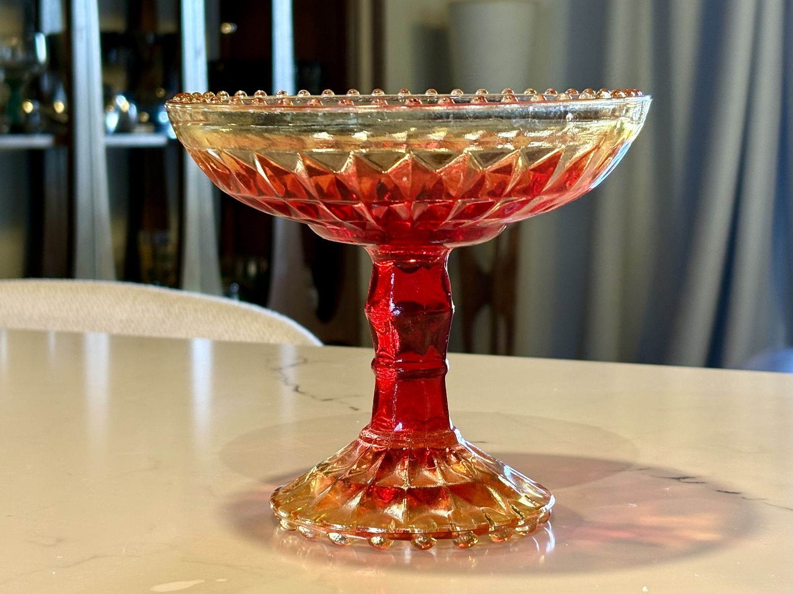 VenmoBeautiful. vintage 1960’s Jeannette Glass Amberina footed compote #1324 Windsor pattern