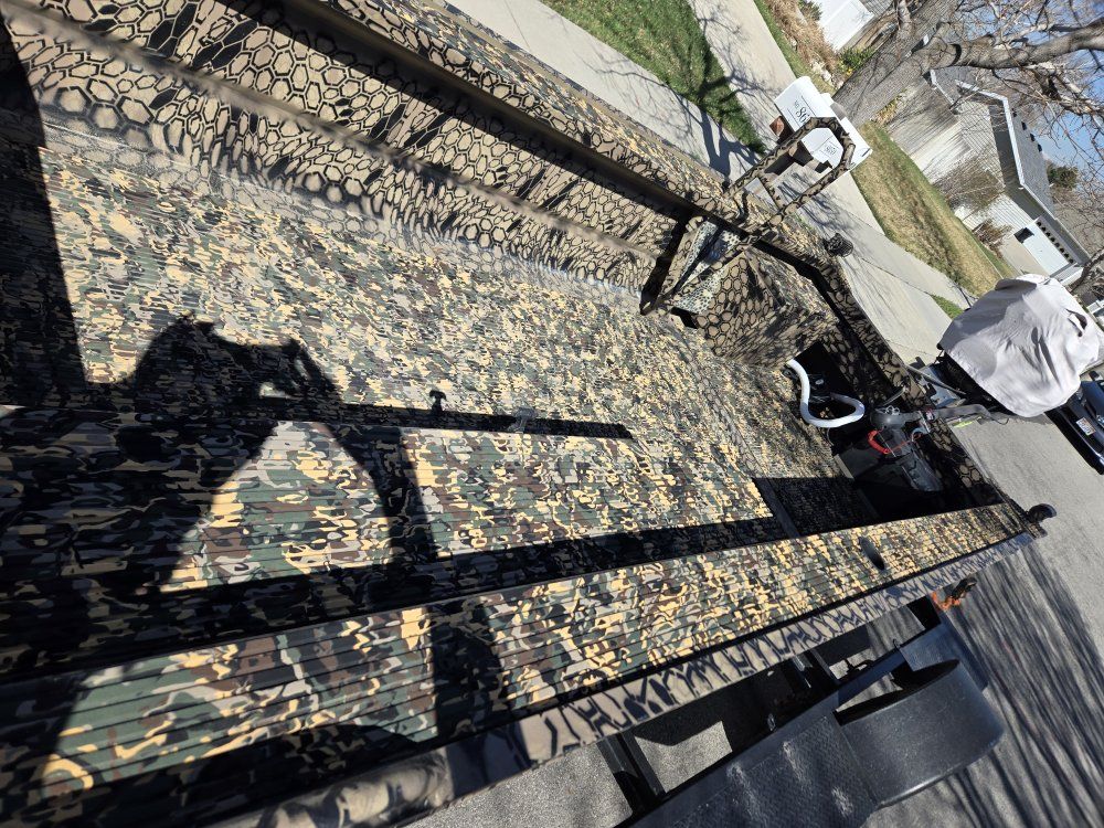 2052Hd hull 7 ft front deck with hatch for storage. 5ft side/gun box fully wired up switch panel with bilge and full interior and exterior lighting as well as in the hatch. full hydroturf from front to back including the huntdeck Wetlander slick bottom Garmin fishing finder 2 person tube with y rope all life jackets, air horn, flag, flare gun, etc... trailer has rock lights all around as well as led tails and spare tire. all lighting works. Boat was painted in summer of 2025 as well as the trailer being rhino lined.