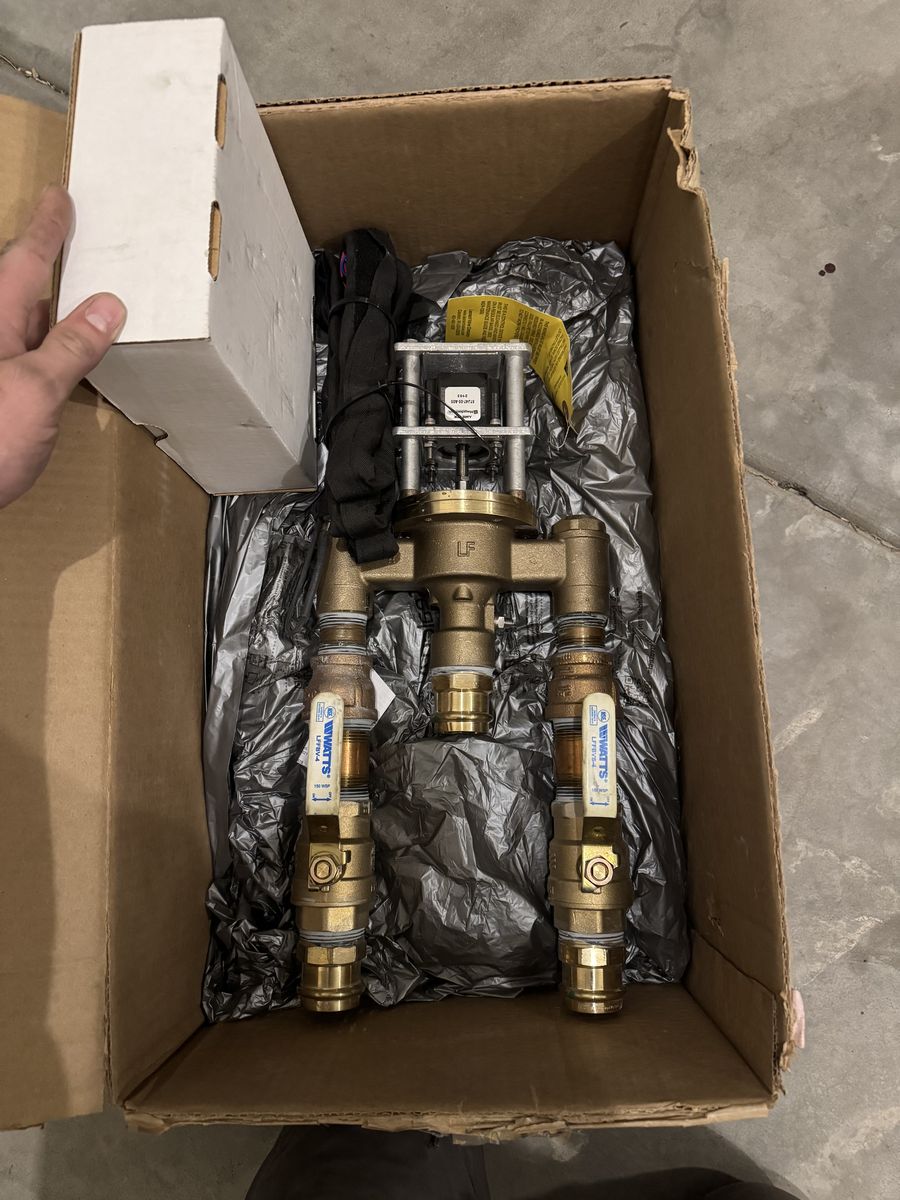 Product Features: • Digital Mixing Valve with 1” inlet angled check stops, 1-1/4” Outlet and integral RTD Sensor • 1" NPT inlets, 1-1/4" NPT outlet (25mm X 32mm) • 0.25 GPM (.95 L/min) minimum flow capacity • Maximum operating pressure: 200 PSIG (1379 KPA) • Controls water temperature to ± 2°F in accordance with ASSE 1017 • Controls water temperature to ± 2°F during times of low / no system demand • Automatic Hot/Cold Water shutoff upon cold/ hot water inlet supply failure • User programmable set point range between 65°F and 180°F • UL Listed Control Box • UL Listed 120V plug in power supply with 6’ cord • Simple/intuitive user commissioning and setup • Factory assembled and tested
