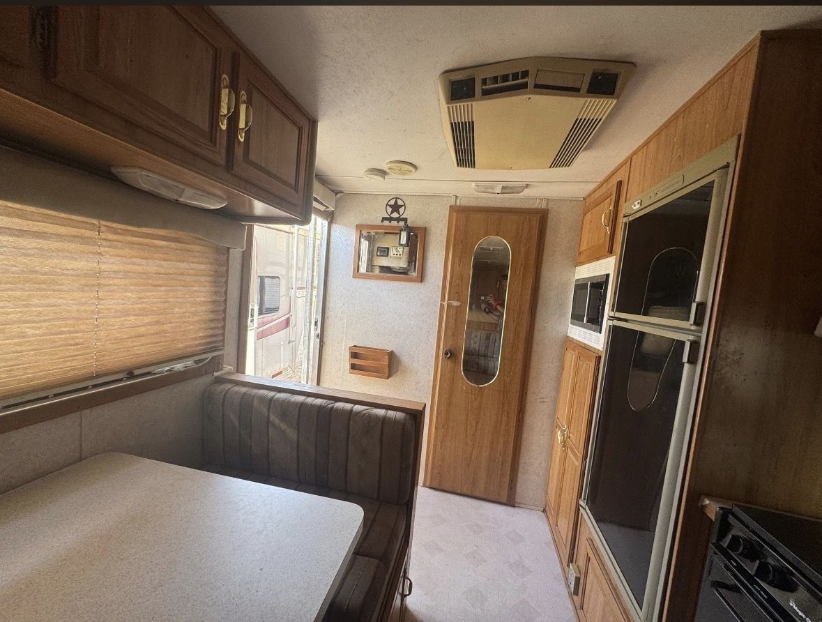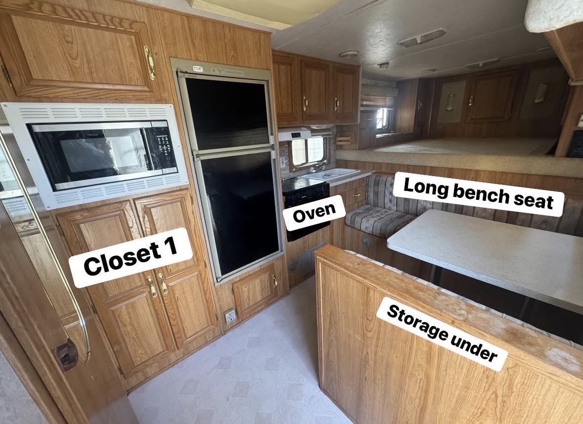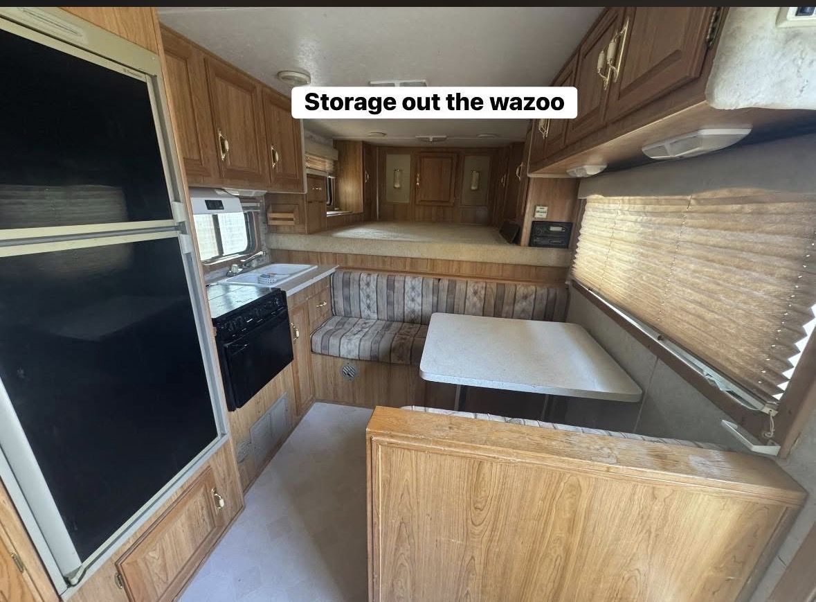 *Mounds of storage - I forgot I had so much stuff tucked away *extra water tank under the Manger- with a pump to either use for horses or make your camping trip last longer with more shower water! (I’ve found these are extremely rare to find!) *a HUGE bathroom all of us girls could get ready in at the same time! *dinette folds into a bed *tires are only about 18 months old *swing out saddle rack (4 saddles) *love the stud stall design! *pass thru door from bathroom to stud stall *oven (most trailers don’t come with them anymore) *TWO 2️ CLOSETS! Yes I’m reallllly gonna miss this! 🧺 🧺 *huge bathroom cupboards