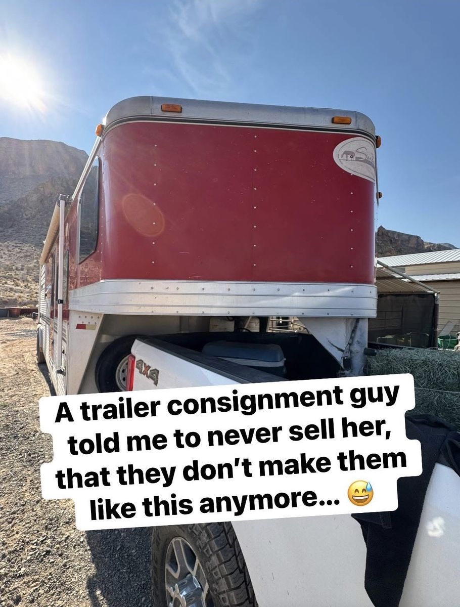 Sneak peek… I still need to clean out some more of her MANY storage compartments I’m gonna miss … but this steady eddy Big Red Sundowner is gonna make a new traveling horse family some great memories! 2000 #sundowner 4 horse LQ