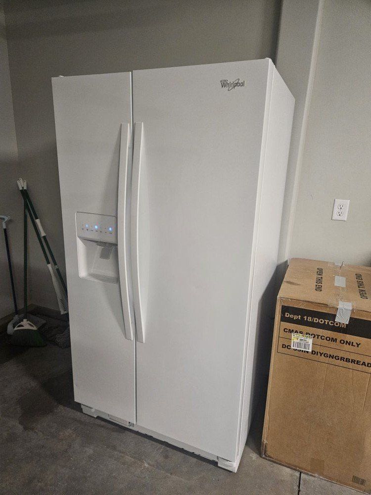 SAME DAY DELIVERY IMMACULATE WHIRLPOOL SIDE BY SIDE REFRIGERATOR WITH WATER AND ICE DISPENSER EVERYTHING LOOKS AND WORKS AMAZING