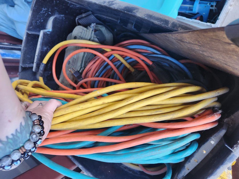 Boots $100 Extension Cords $20 each Bag of misc wrenches +more not pictured $100 Pancake Air Compressor $150 Kobalt Saw $180 Senco Framing Nail Gun + nails $150 Black and Decker Saw $45 DeWalt Saw $125 Makita $130 Ryobi Set $200 Flooring Rollers $80 each Saw Horses $50 each
