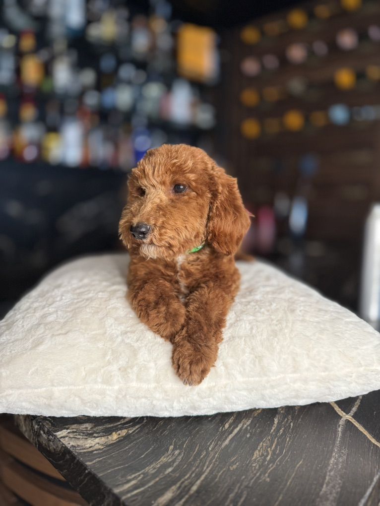 These little poodles will be about 20-30 pounds full grown with mom being 45 pounds and dad 10! They are doggy door trained and socialized! Poodles are 100% non shedding and hypoallergenic. They are the second smartest dogs in the world and can be trained to do anything!