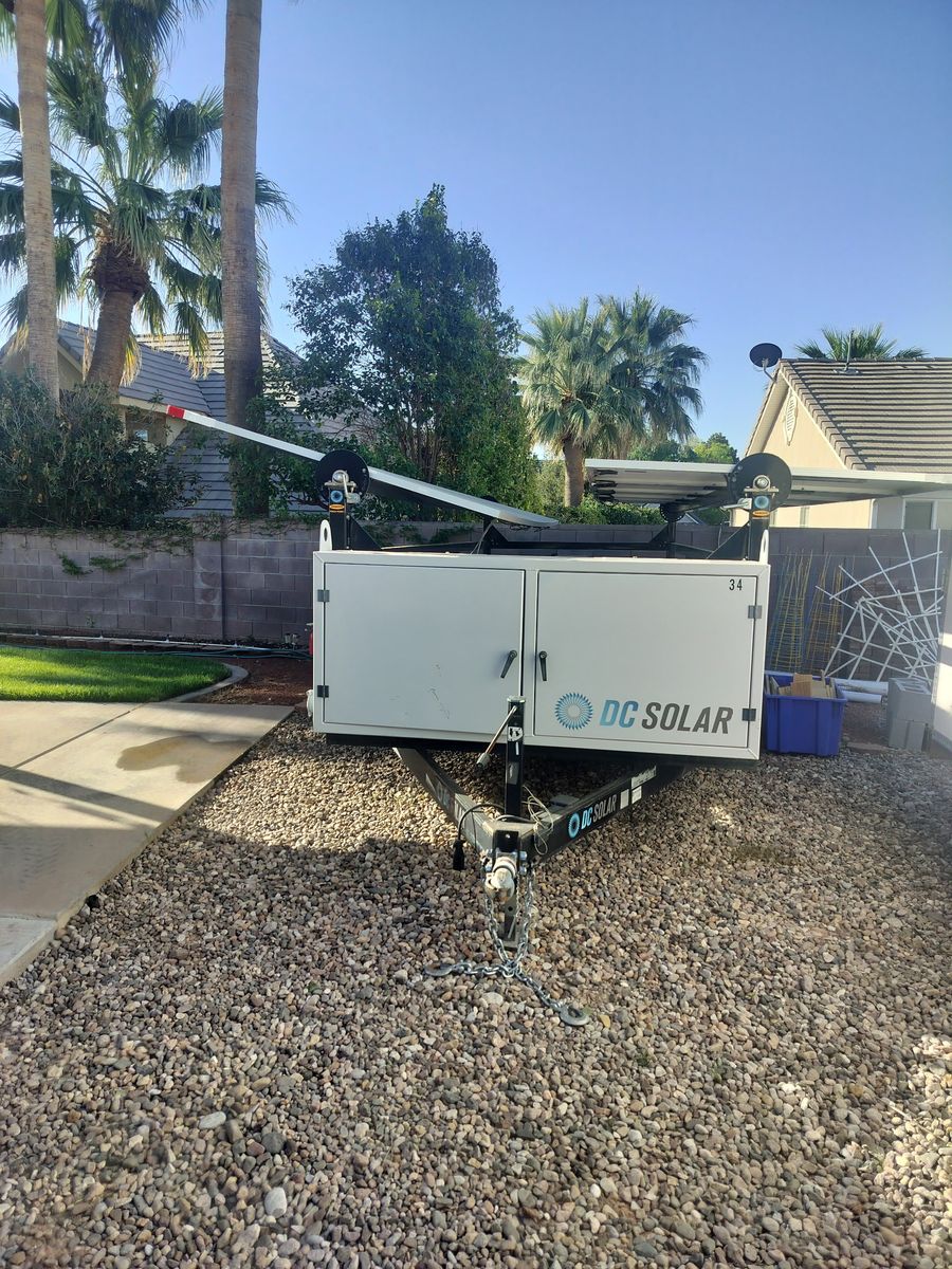 Complete dc solar trailer with 11kkw generator with 50.9 hrs. Good batteries rus great. Don't need it anymore.