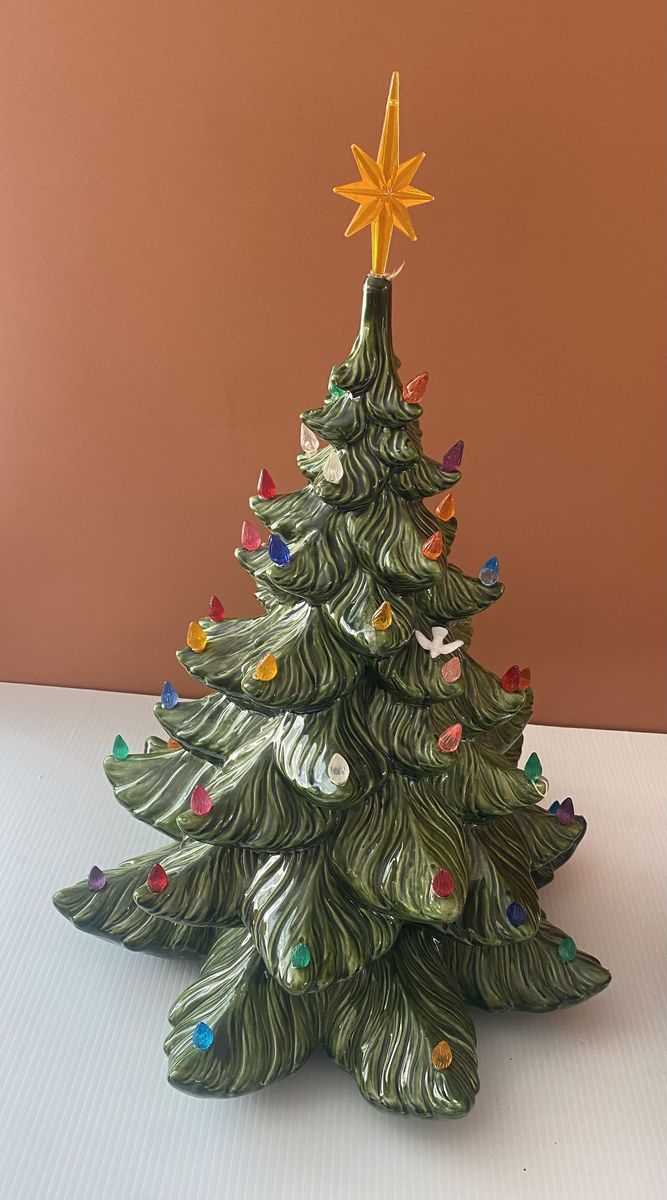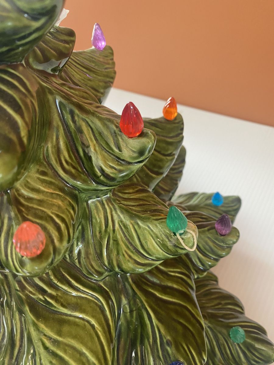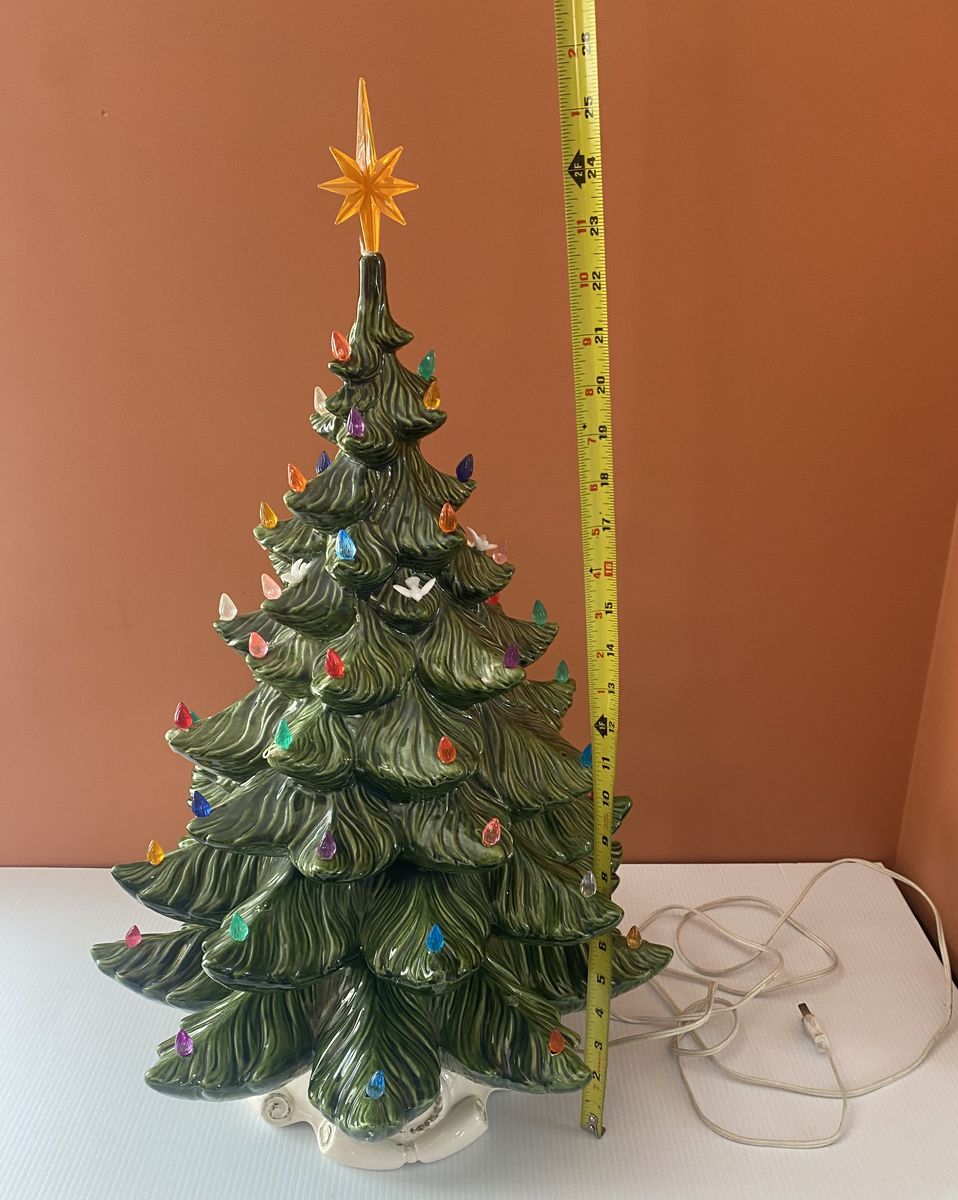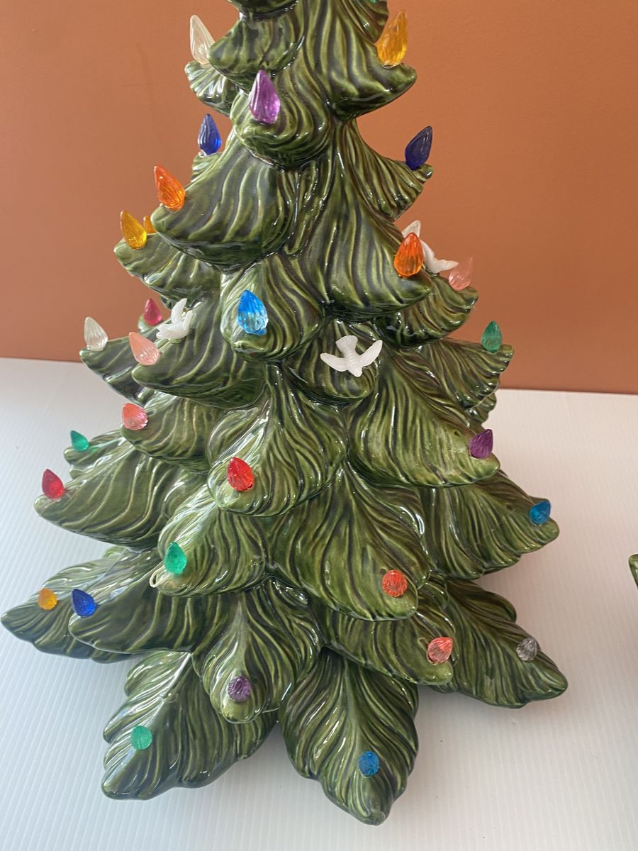 Lovely vintage condition! Huge, approx 23” tall and approx 16” wide at the widest spot. One small paint chip on the end of a branch. Previous owner had hot glued little ornament and accents. A few birds are still attached. A few little wire loops are still attached. A few bits of glue here and there though it can be carefully removed. Cord has tape on it. Light bulb lights up. Cash only, pick up in Lindon up past the new temple.