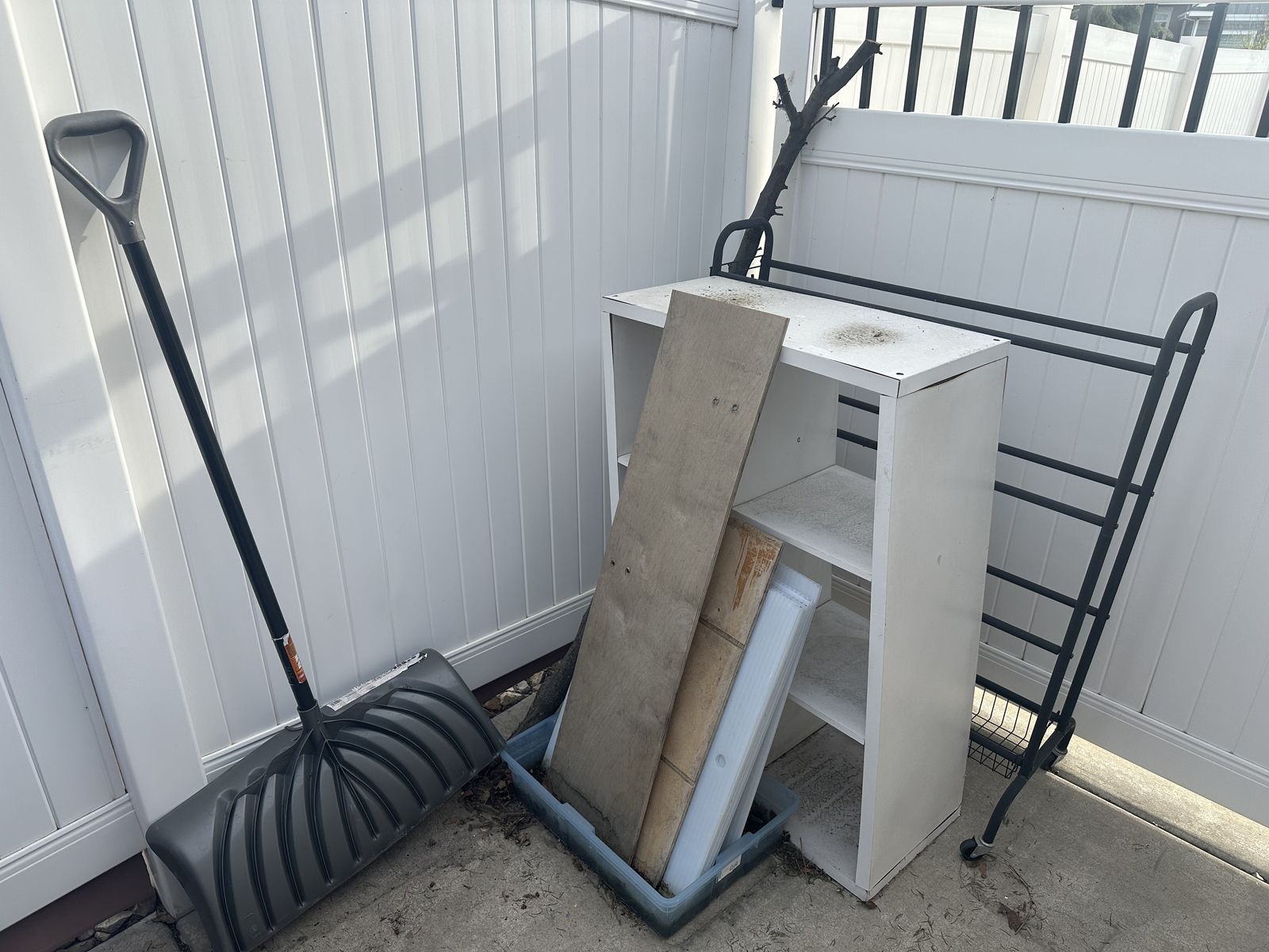 Clothes Washer Metal and Plastic Parts, shovel, sports ball holder, wood
