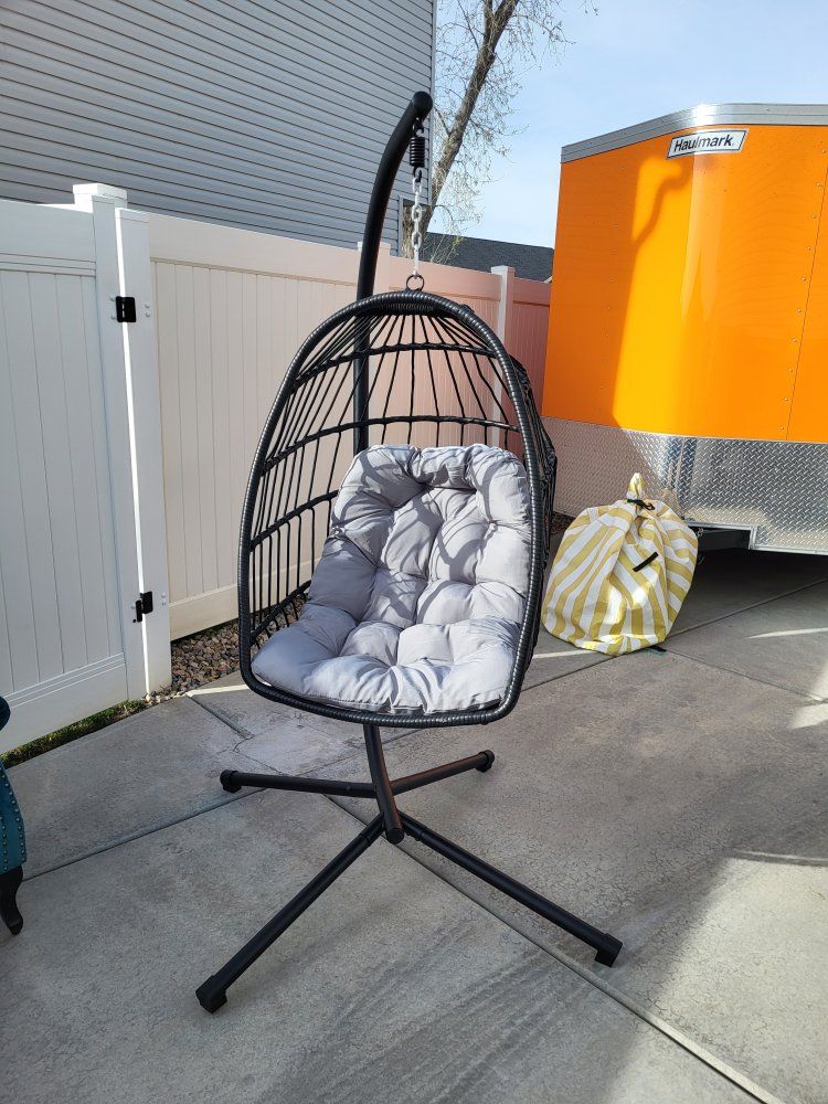 Outdoor Living Wicker Hanging Egg Chair **w/Cushions ** Gray UV Protected Weather Resistant 300lb Weight Limit Brand New & Assembled