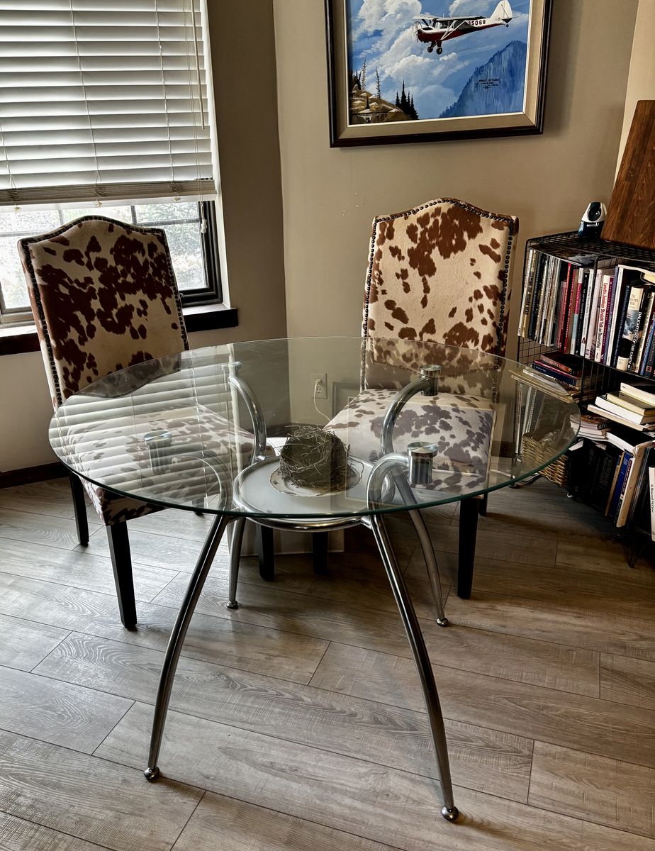 VenmoWe are redecorating and it’s time to sell this cute little glass top table. No scratches, dings, or dents anywhere. It is 40 inches in diameter and you can see the cute little shelf underneath that can hold your knickknacks. Cash or Venmo only.