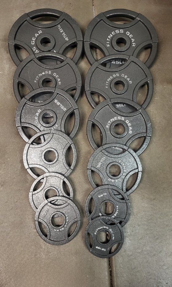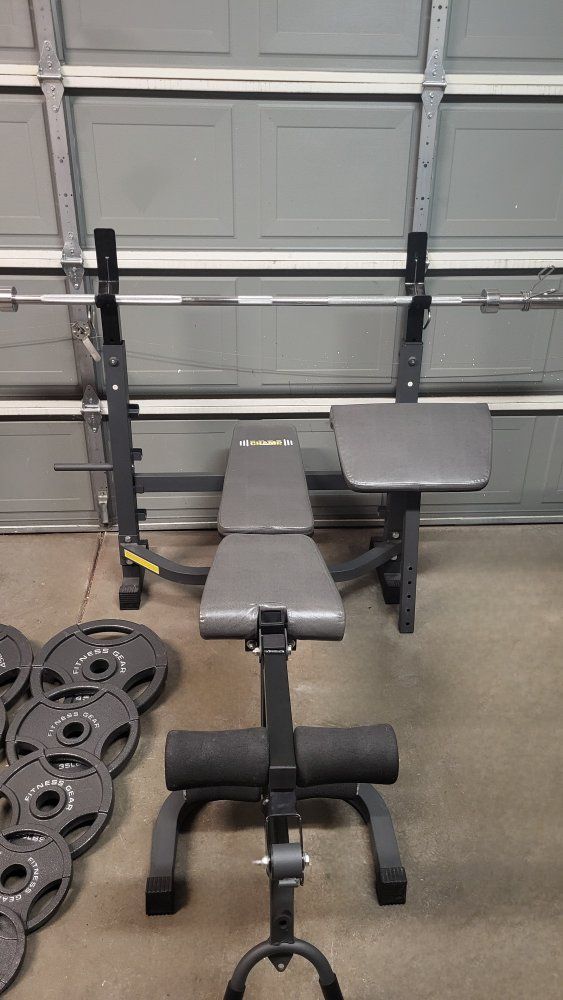 Adjustable bench with a 7 ft Olympic barbell and 247 pounds of Olympic weights,selling together for $250 cash thanks for looking