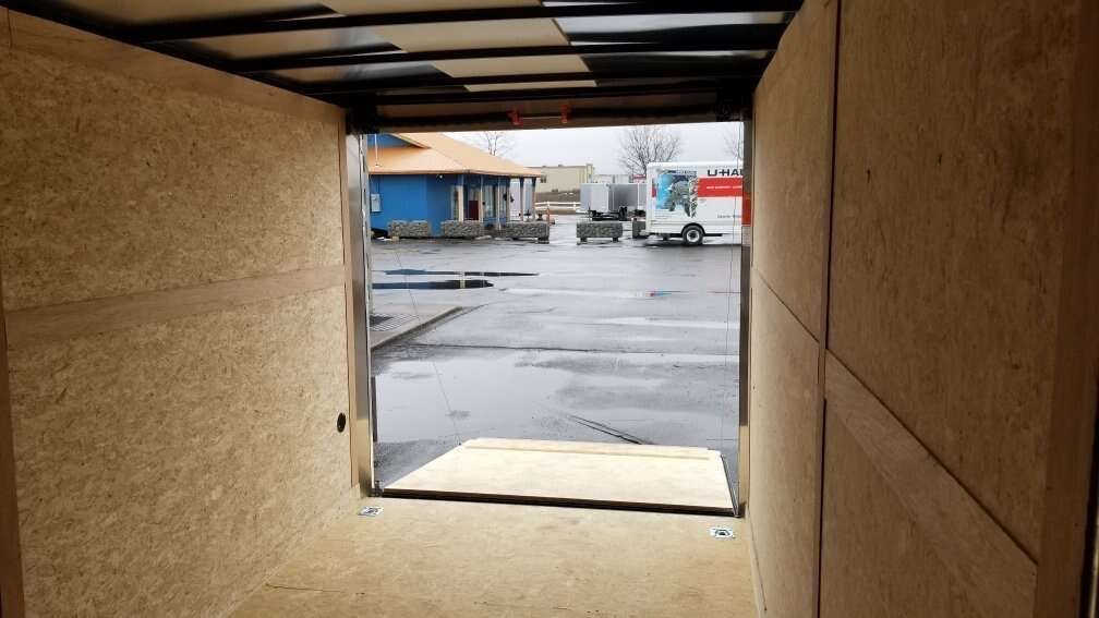 WELLS CARGO 7X16 ENCLOSED TRAILER WITH REAR RAMP DOOR AND DRIVERS SIDE RV STYLE DOOR. FASTTRAC DELUXE MODEL FT716T2-D, REAR RAMP DOOR WITH 16IN RAMP EXTENSION, 7FT INTERIOR HEIGHT,RV STYLE SIDE DOOR (( DRIVERS SIDE ))TANDOM AXLES, 7,000 # GVWR, BRAKES ON ALL WHEELS, RADIAL TIRES, 16IN ON CENTER WALL FRAME, 16IN ON CENTER CROSS MEMBERS, SEMI-SCREWLESS EXTERIOR, .030 ALUMINUM EXTERIOR,UNDERCOATED CHASSIS, 1 PIECE ALUMINUM ROOF. (( NO SEEMS )) 3/4 INCH PLEXCORE DECKING (( SUPERIOR TO PLYWOOD )) 3/8 INCH PLEXCORE INTERIOR WALL LINER , COLOR SILVERFROST,