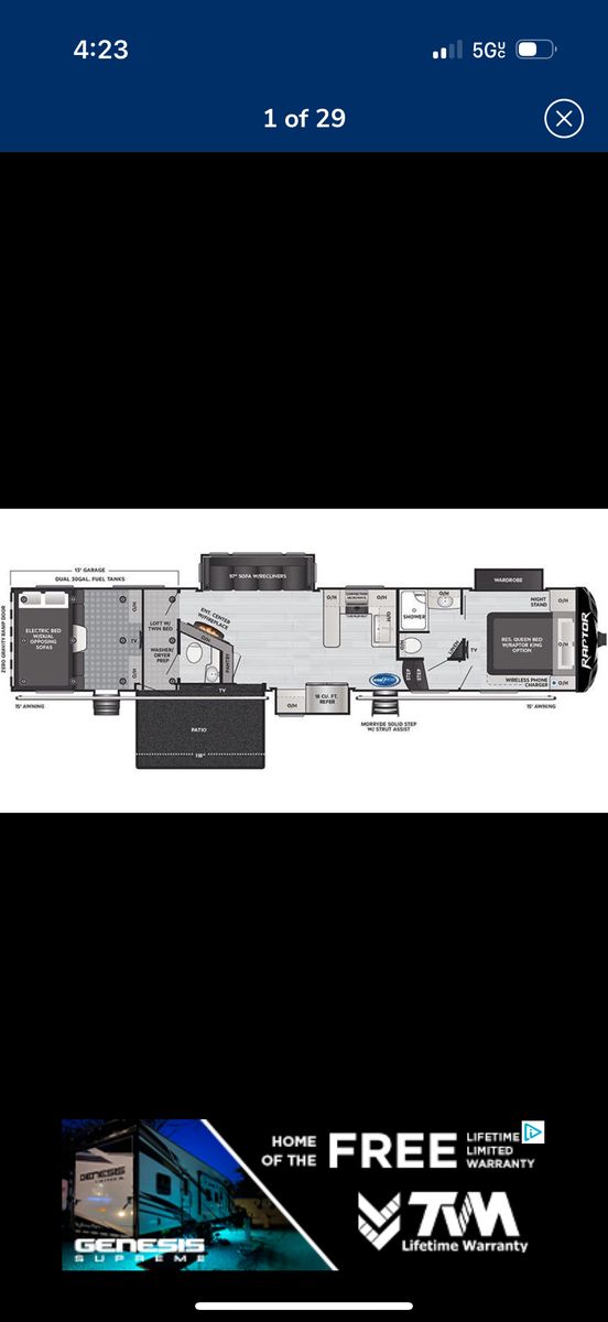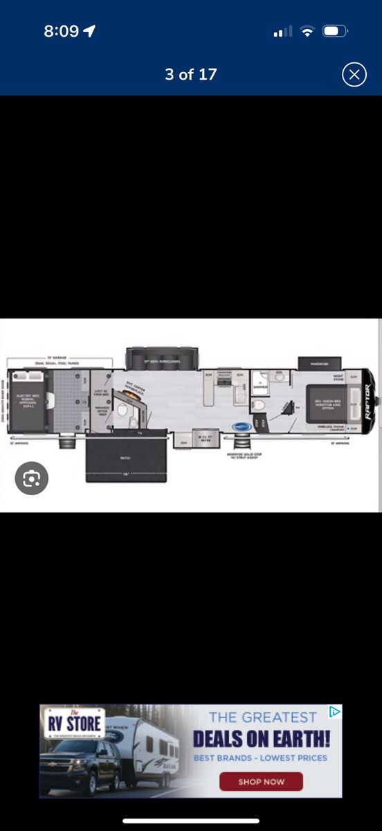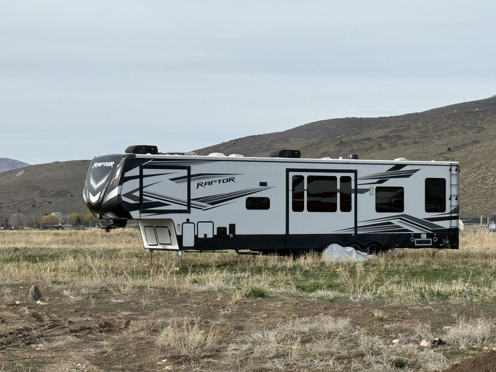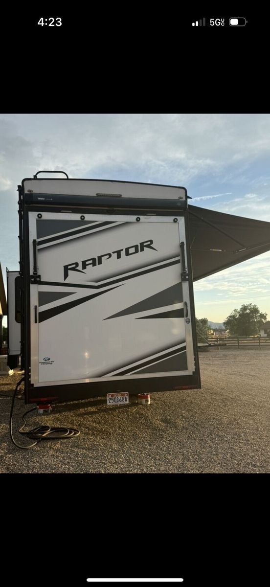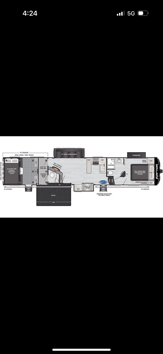 Hi All, we have a beautiful 2020 raptor 429 toy hauler for sale. Made by Keystone and is the ultimate luxurious trim they have above the fusion. This thing has taken us on so many members camping and has a 13 6 foot garage As you can see, it has double decks one in the rear and one on the side. Two entrances Lots of solar panels on the roof with lots of batteries. This one has the upgraded instant hot And it also has a converter 5500 W Cummins generator With two fuel tank tanks