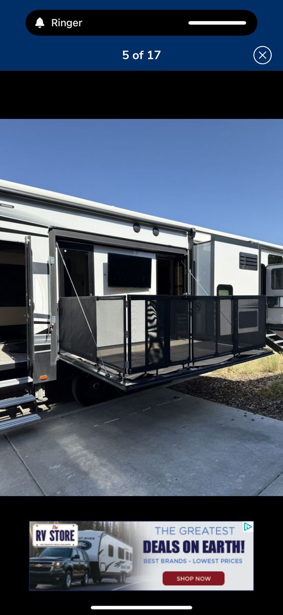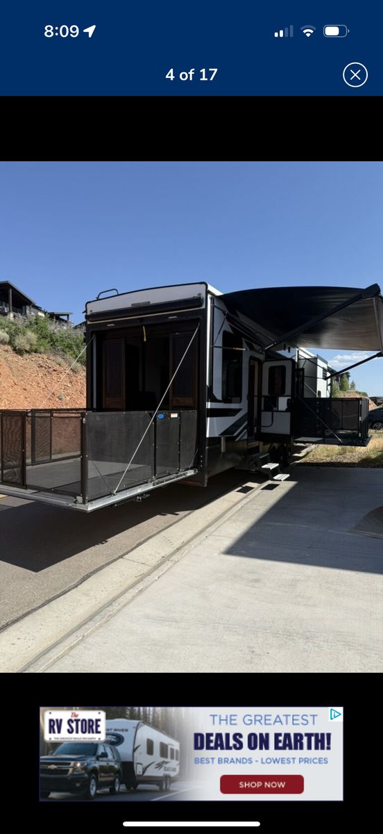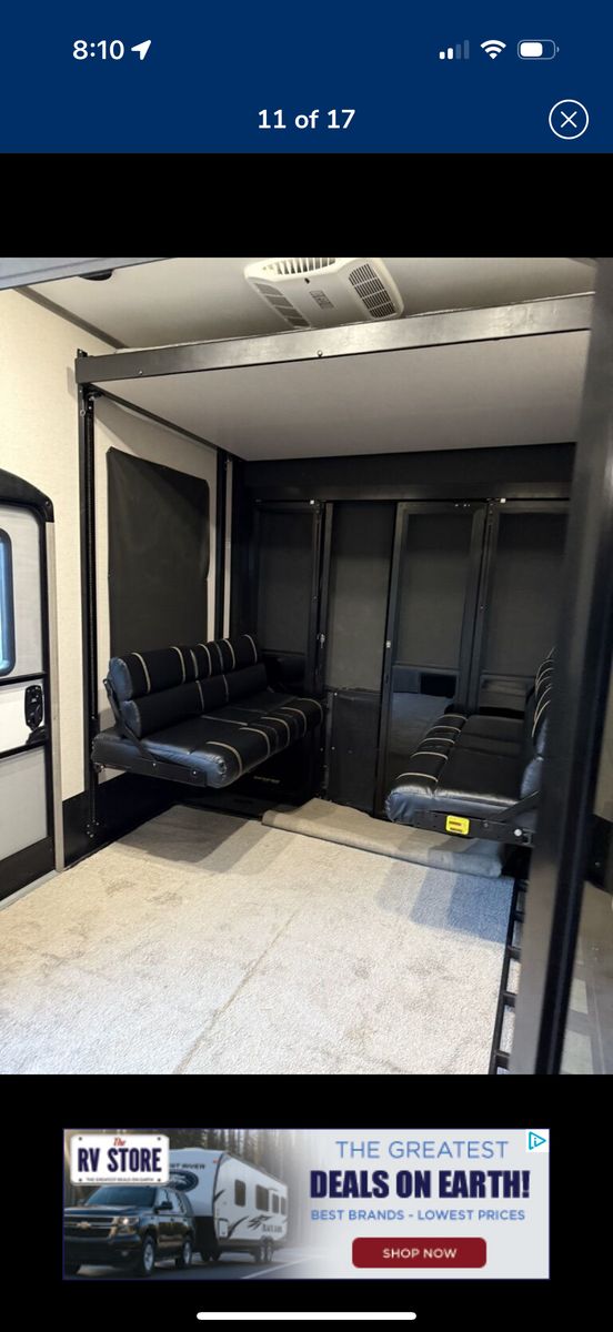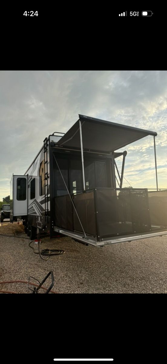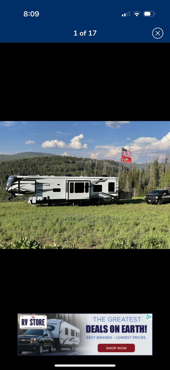 Hi All, we have a beautiful 2020 raptor 429 toy hauler for sale. Made by Keystone and is the ultimate luxurious trim they have above the fusion. This thing has taken us on so many members camping and has a 13 6 foot garage As you can see, it has double decks one in the rear and one on the side. Two entrances Lots of solar panels on the roof with lots of batteries. This one has the upgraded instant hot And it also has a converter 5500 W Cummins generator With two fuel tank tanks
