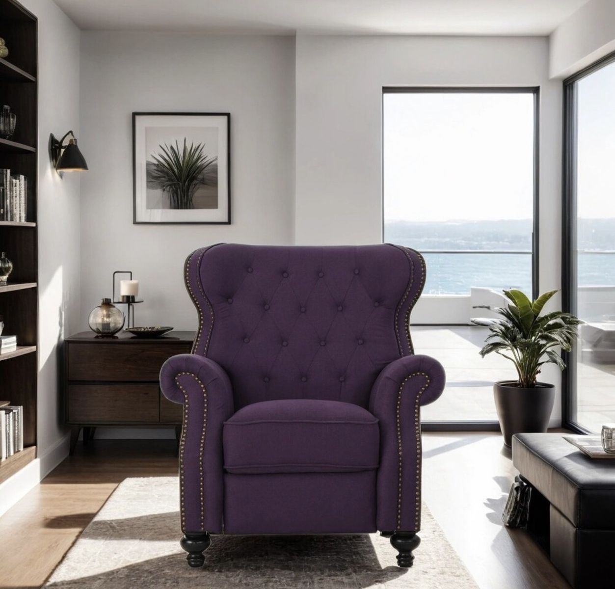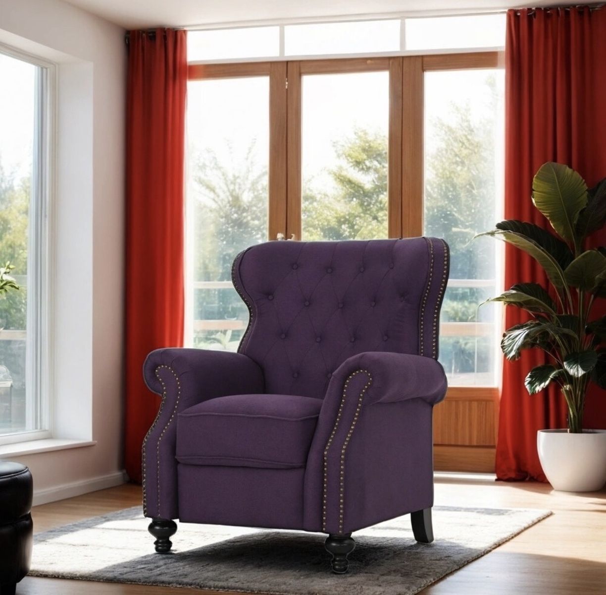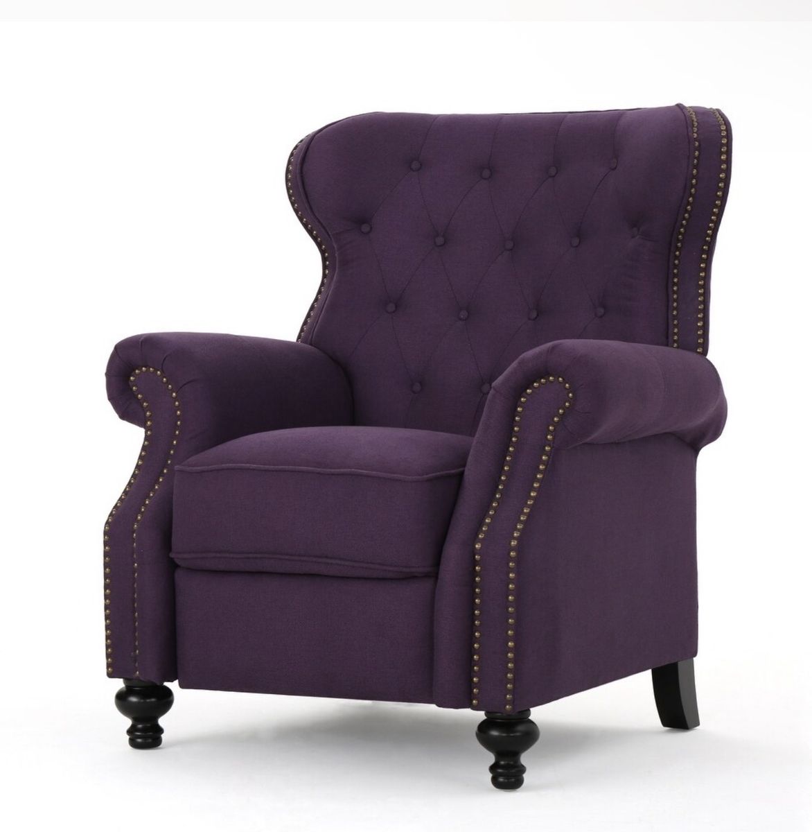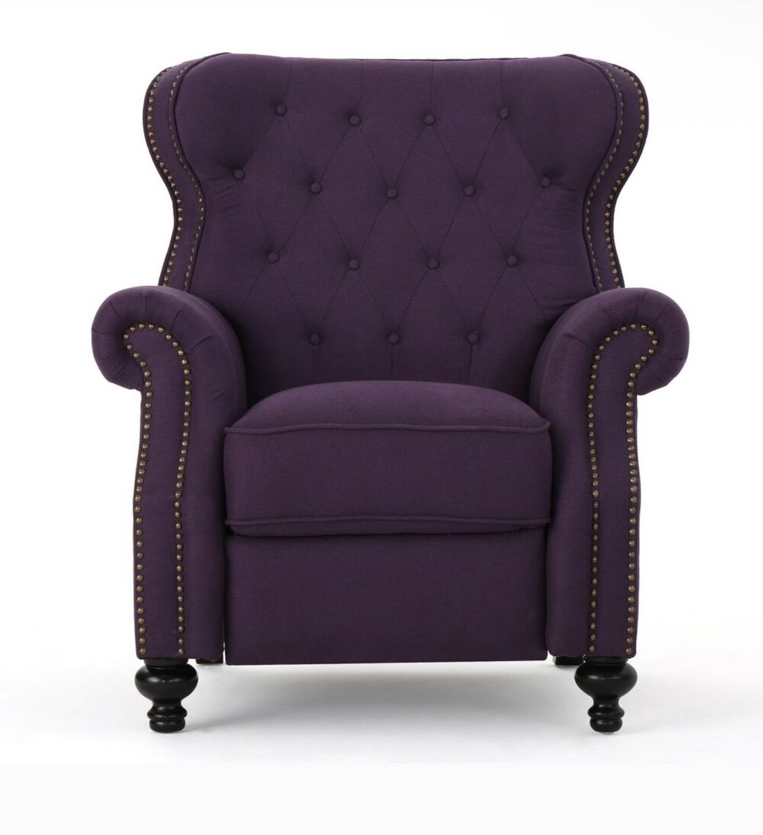 Elegant Push-Back Recliner with Tufted Back & Nailhead Trim, Plum