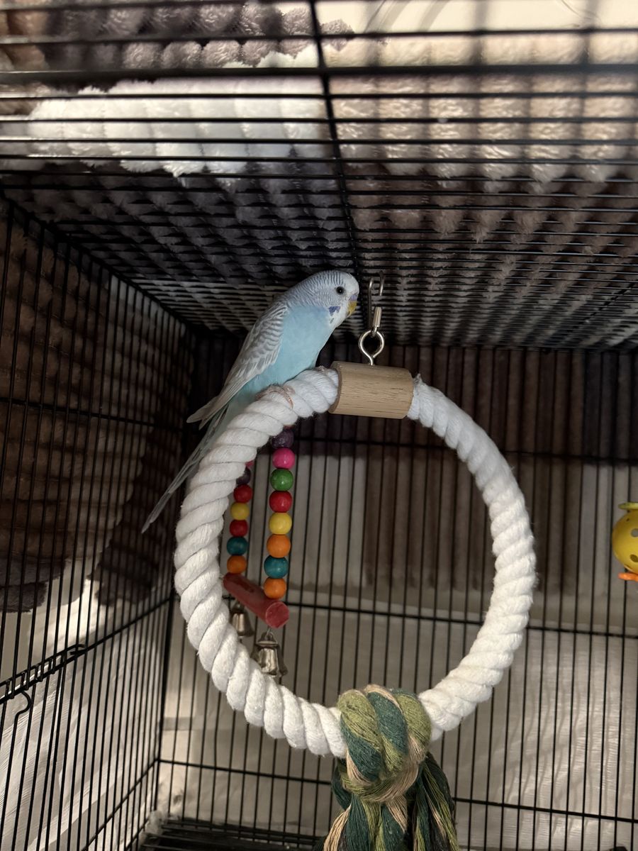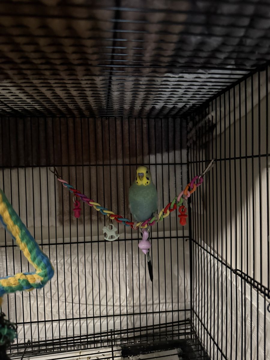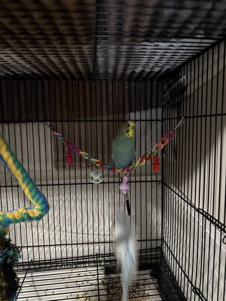 PayPalTwo parakeets. Have to go in a pair. Blue and white parakeet, female- Veno. Blue, green and yellow parakeet, male- Amaretto. Come with cage and toys. 50$ OBO