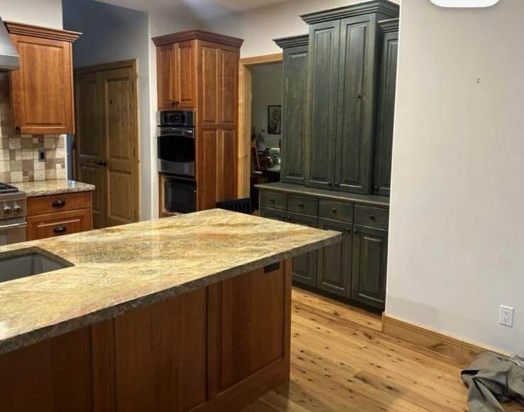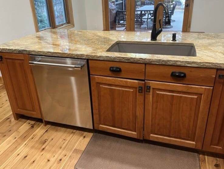 Beautiful kitchen cabinets. Real wood and well made. NOT selling separately. Read for details and measurements. Removed and ready for its new home. The only countertop that comes with the set is the big piece of quartz where the sink is. Read for more details..