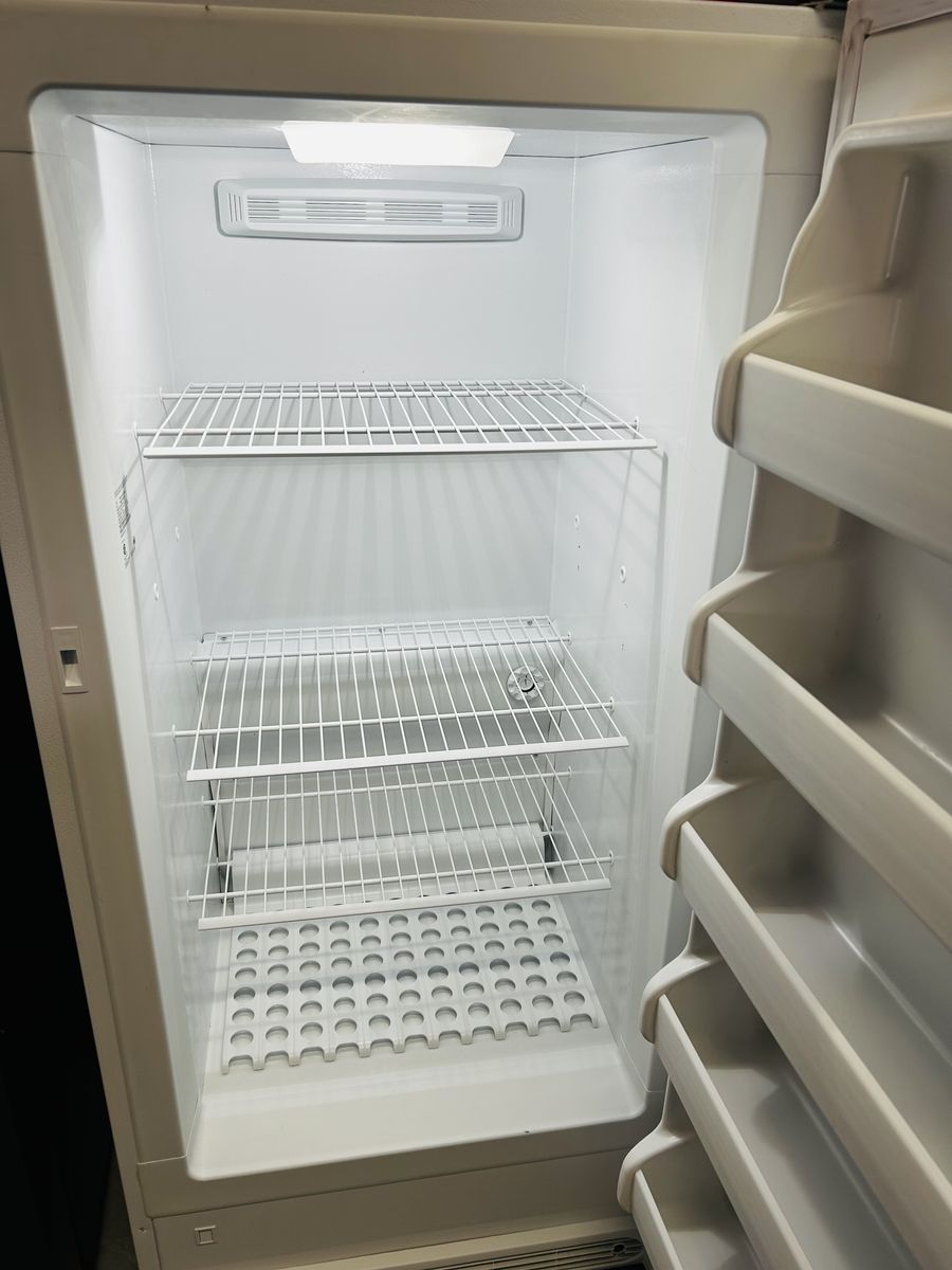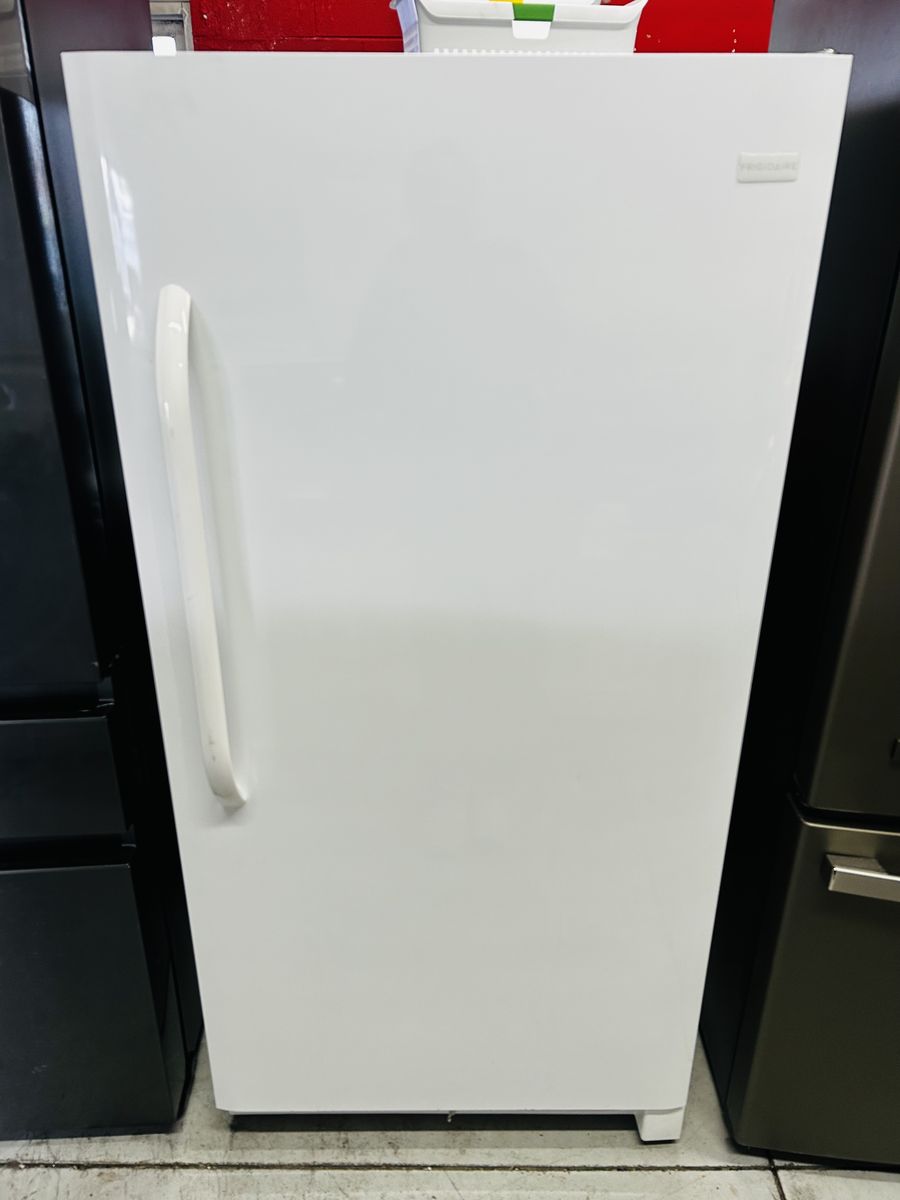 Frigidaire Frost Free Up Right Freezer. Spacious shelving fills this 13.83 cu. ft. freezer, lit by bright, low-energy LED lighting. Find items as easily as you can fit them! Works great, clean, 45 day warranty, delivery/install available.