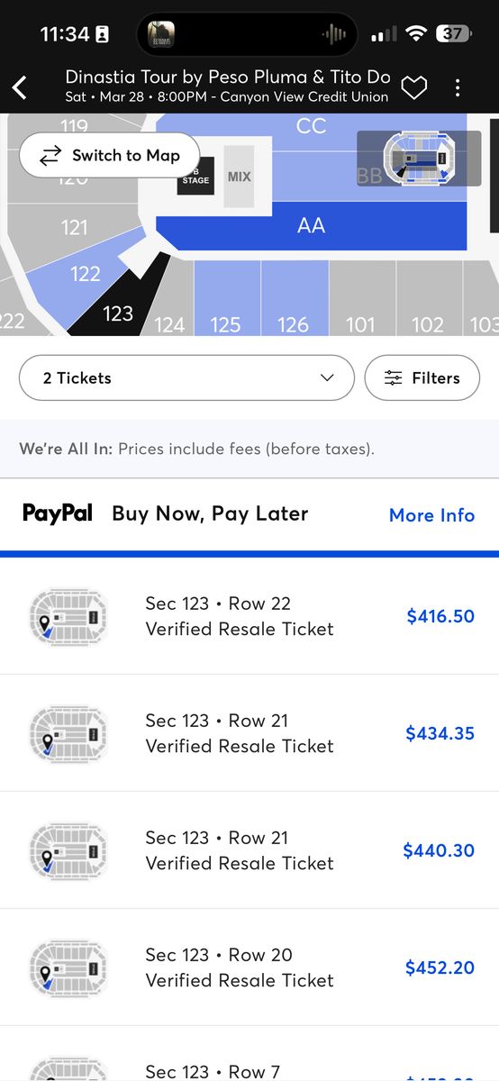ApplePayIm selling my 2 tickets for Peso Pluma concert im asking for $300 each $600 for both. Way cheaper then the online prices. Just can’t make it anymore and don’t want them to go to waste. Message me at 8014626403 for more info
