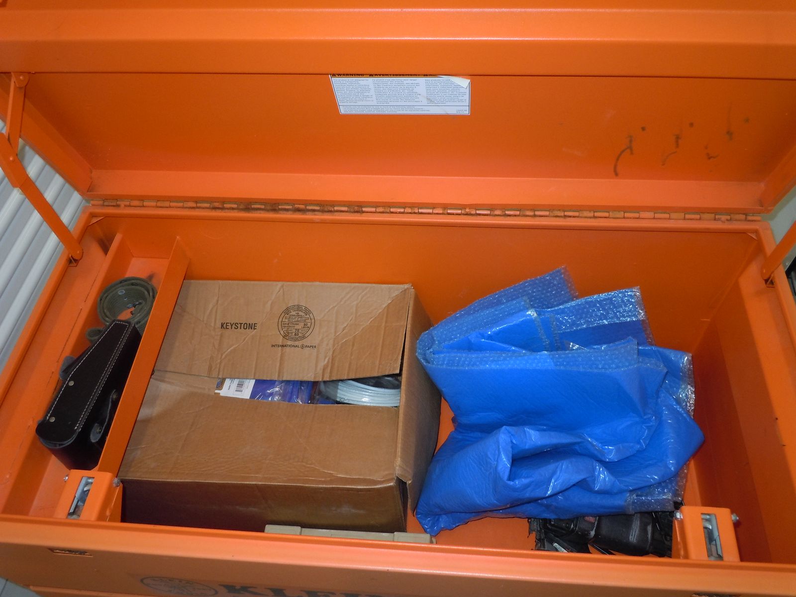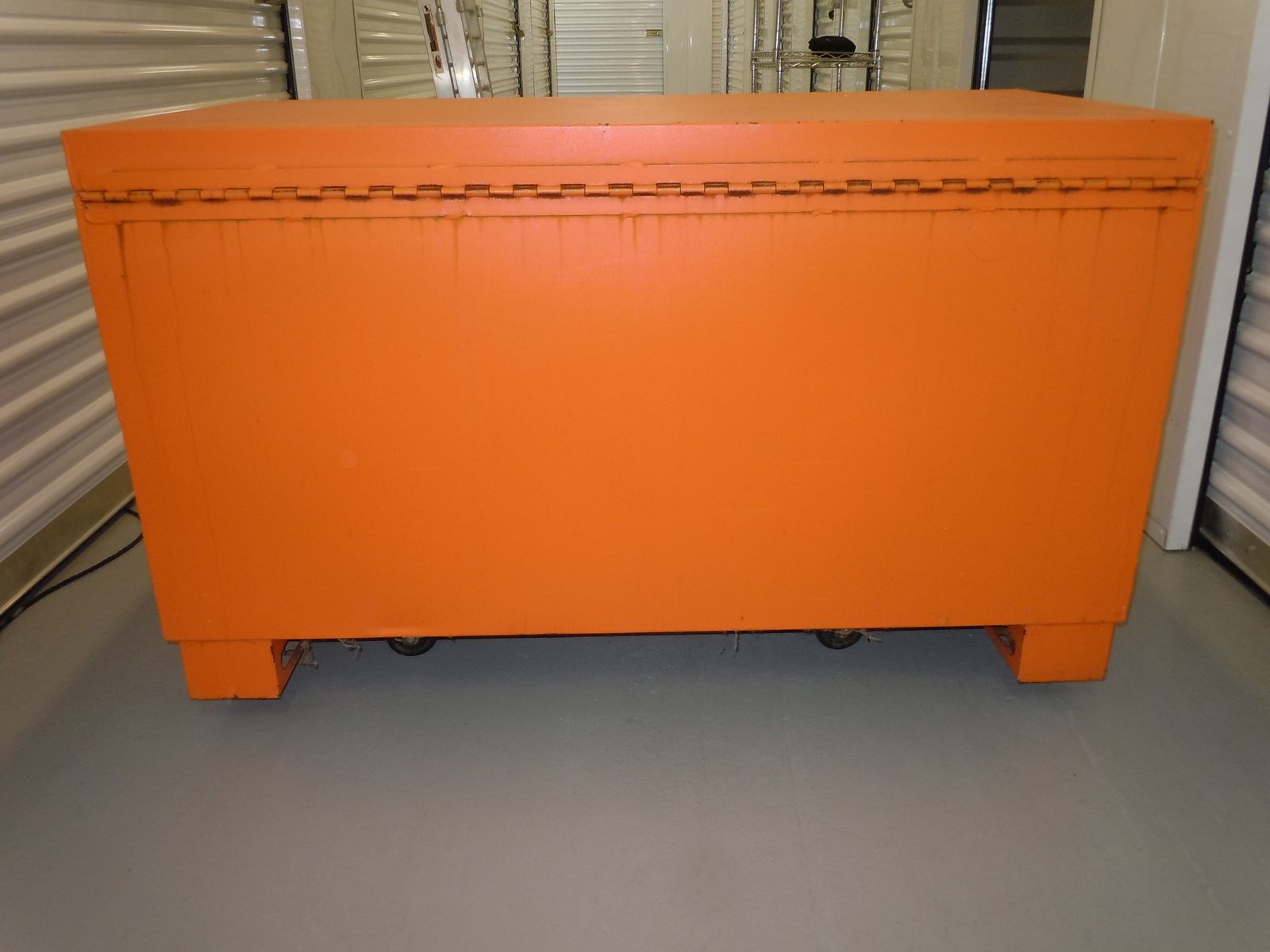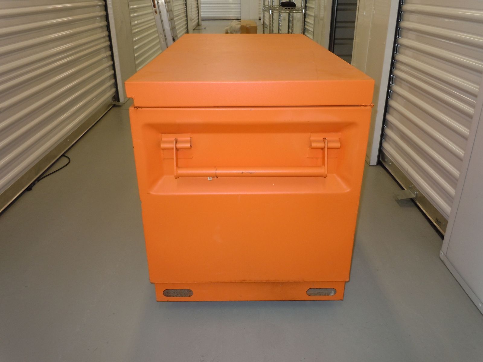 Klein Tools steel toolbox. 48 IN long x 24 IN wide x 29 IN tall (approximately). Very good condition. Will have all items removed from box. Selling for $ 300.00.
