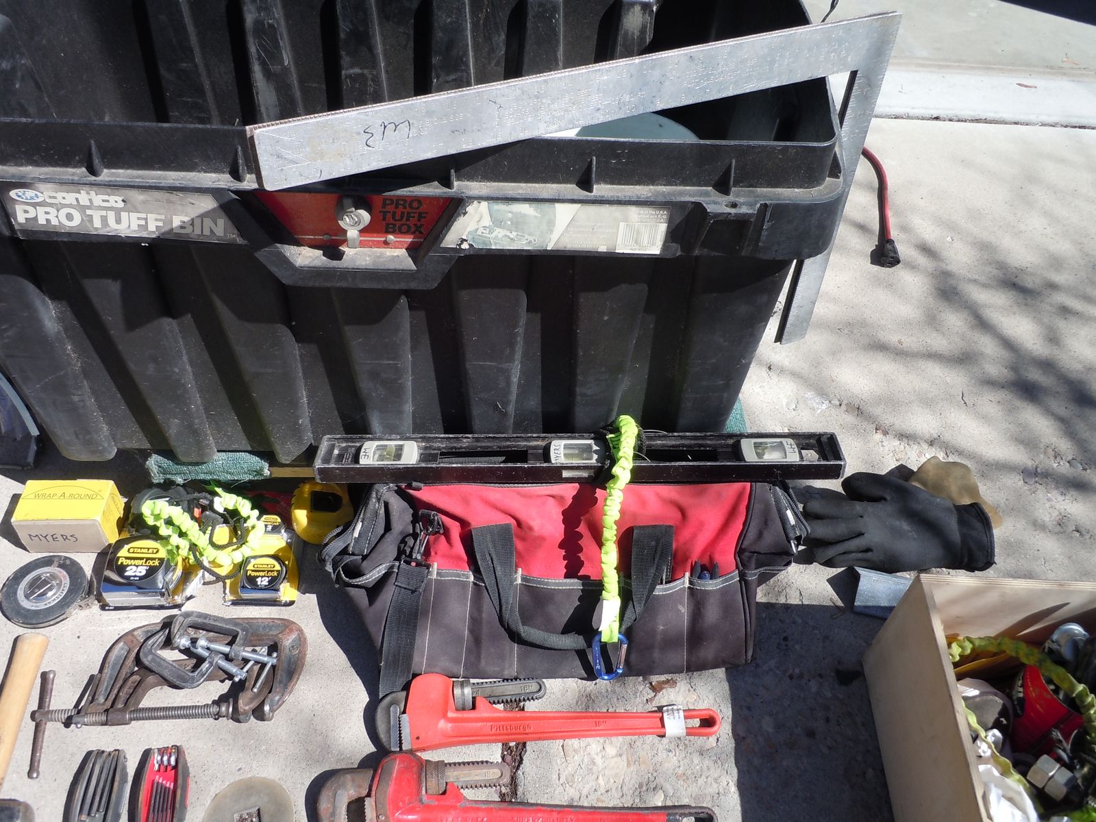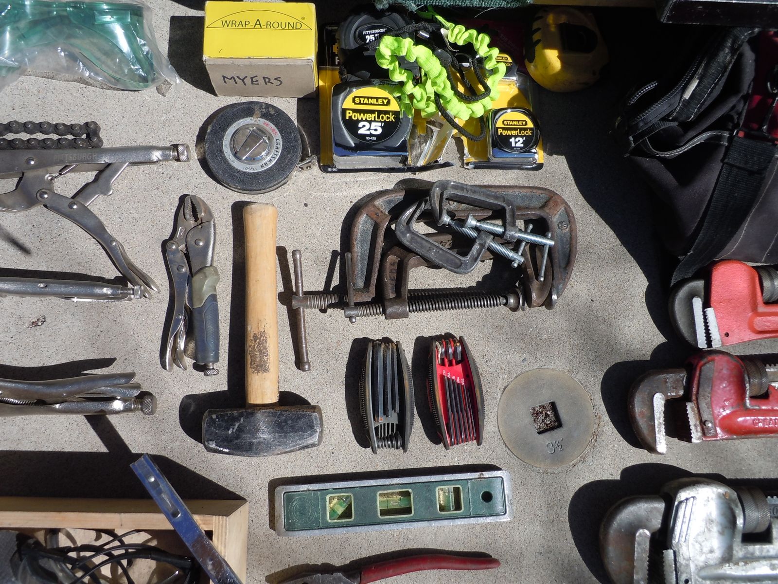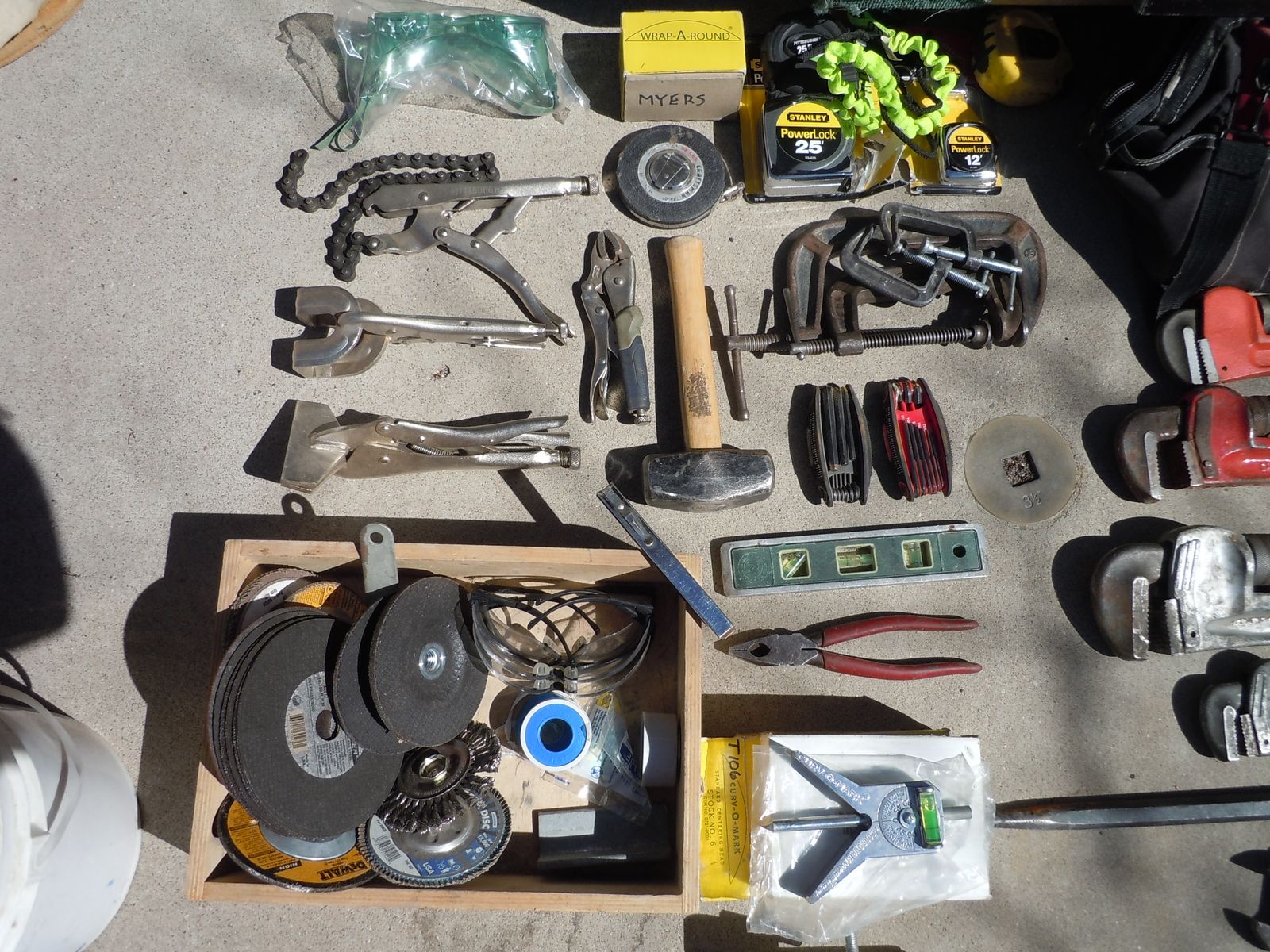 Also Tools used by Pipefitter. Center finder as new, flange pins, multiple combination wrenches, pipe wrenches, vise grip tools, flange tools, tape measures, squares, tool bag, toolbox, and lots of miscellaneous items. Center finder and flange pins were $200 alone. Approx $650 total purchases. Need to sell all together.
