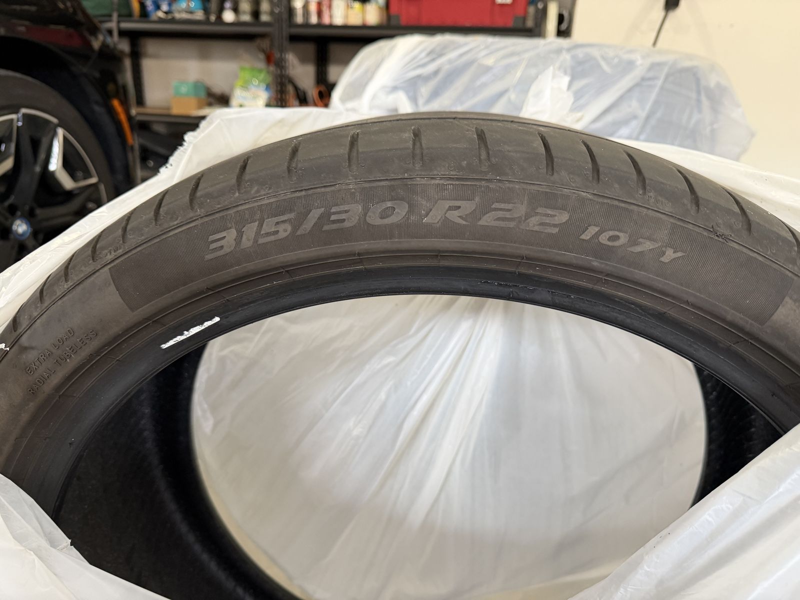 ZelleI have a set of 2 275/35 R22 and another set of 2 315/30 R22 tires for sale. These are summer tires off of a BMW X5. All four tires have about 5/32 of tread remaining. Make me a reasonable offer.