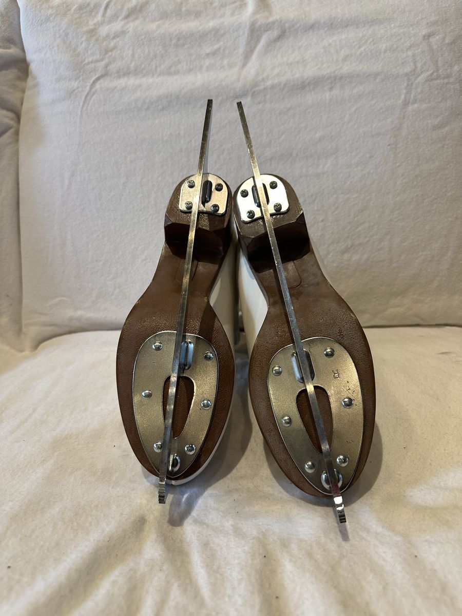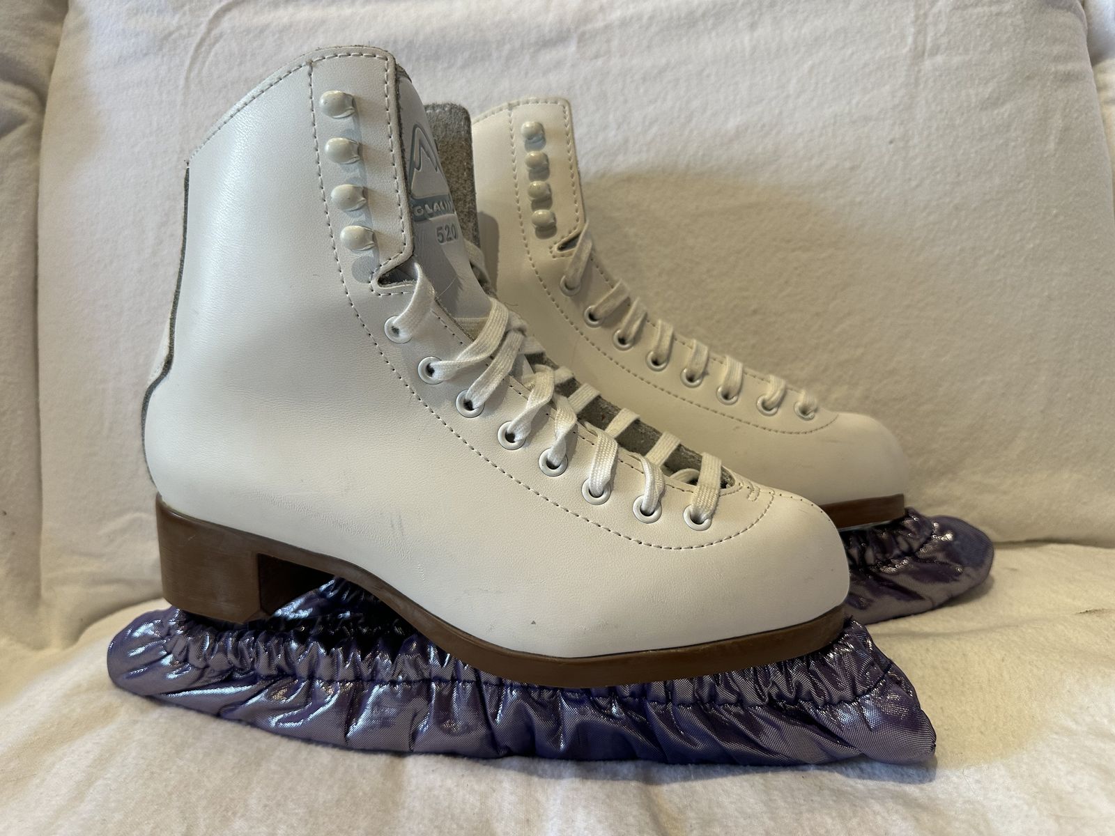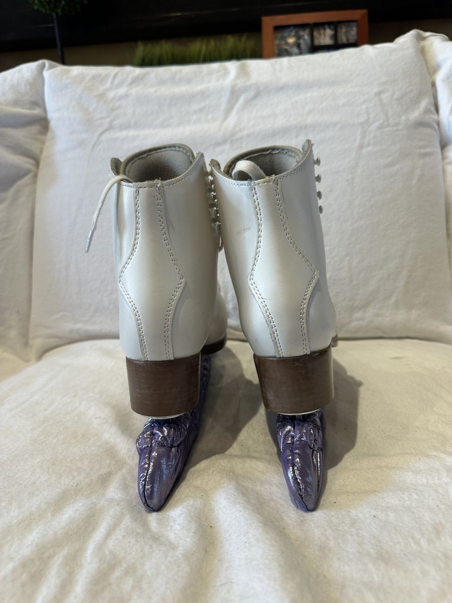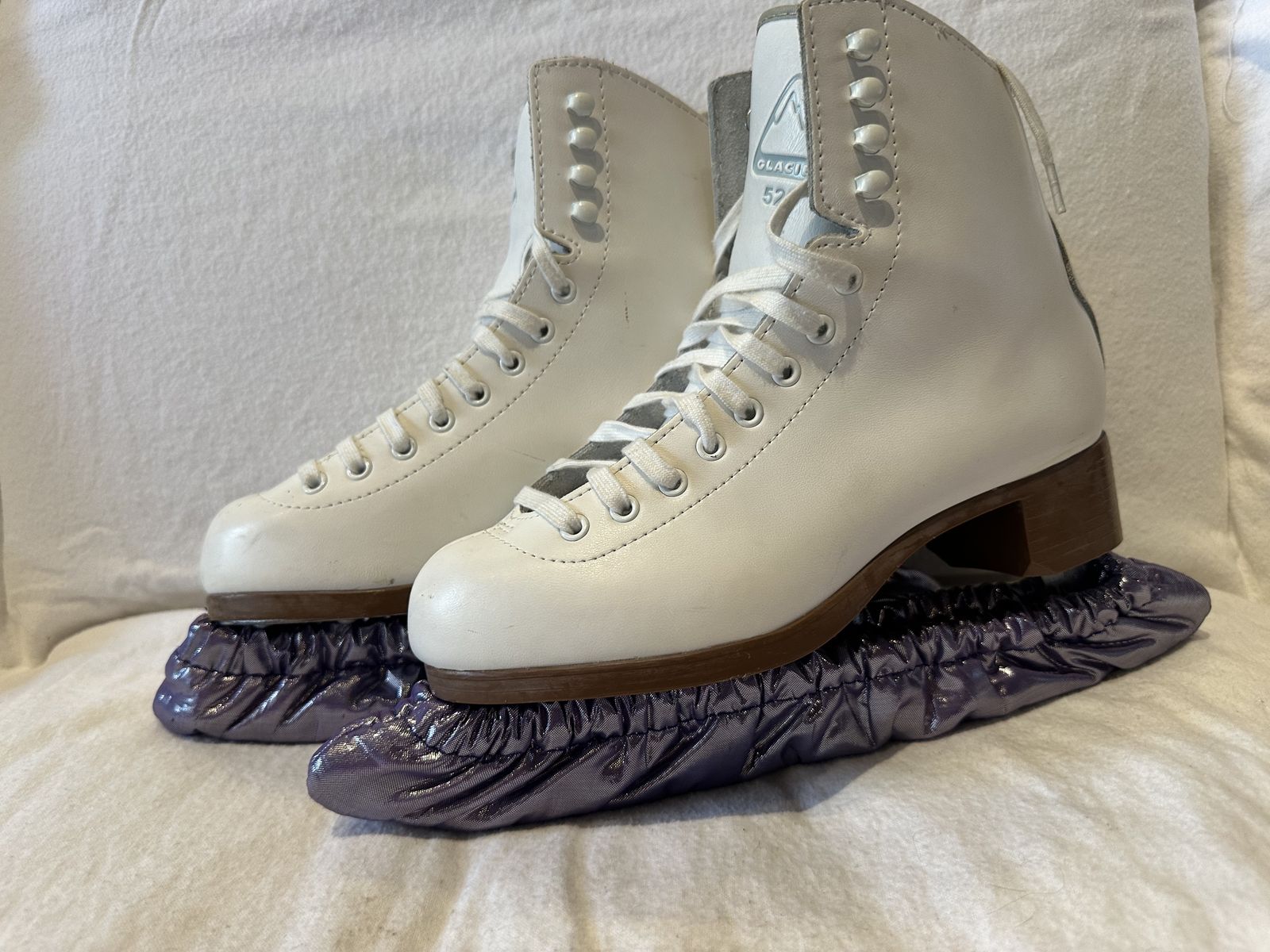 Jackson glacier 520 youth size 5.5 or women’s size 7 figure skates. These are lightly used and have purple blade covers. See photos for details. I take cash or Venmo, but cash is preferred. Text is best. 801-201-4446. Check out my other ads for additional sizes and styles.
